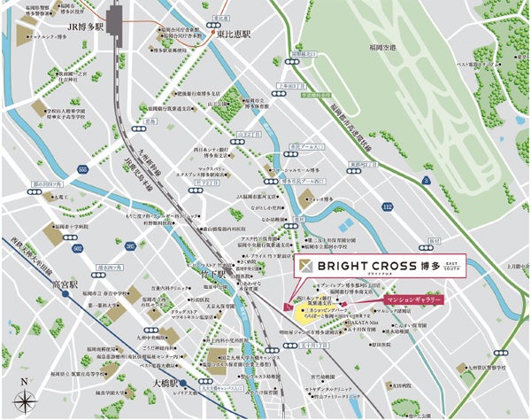 交通:JR鹿児島本線「竹下」駅(SOUTH:徒歩8分、EAST:徒歩11分)、西鉄天神大牟田線「大橋」駅(SOUTH:徒歩21分、EAST:徒歩22分)