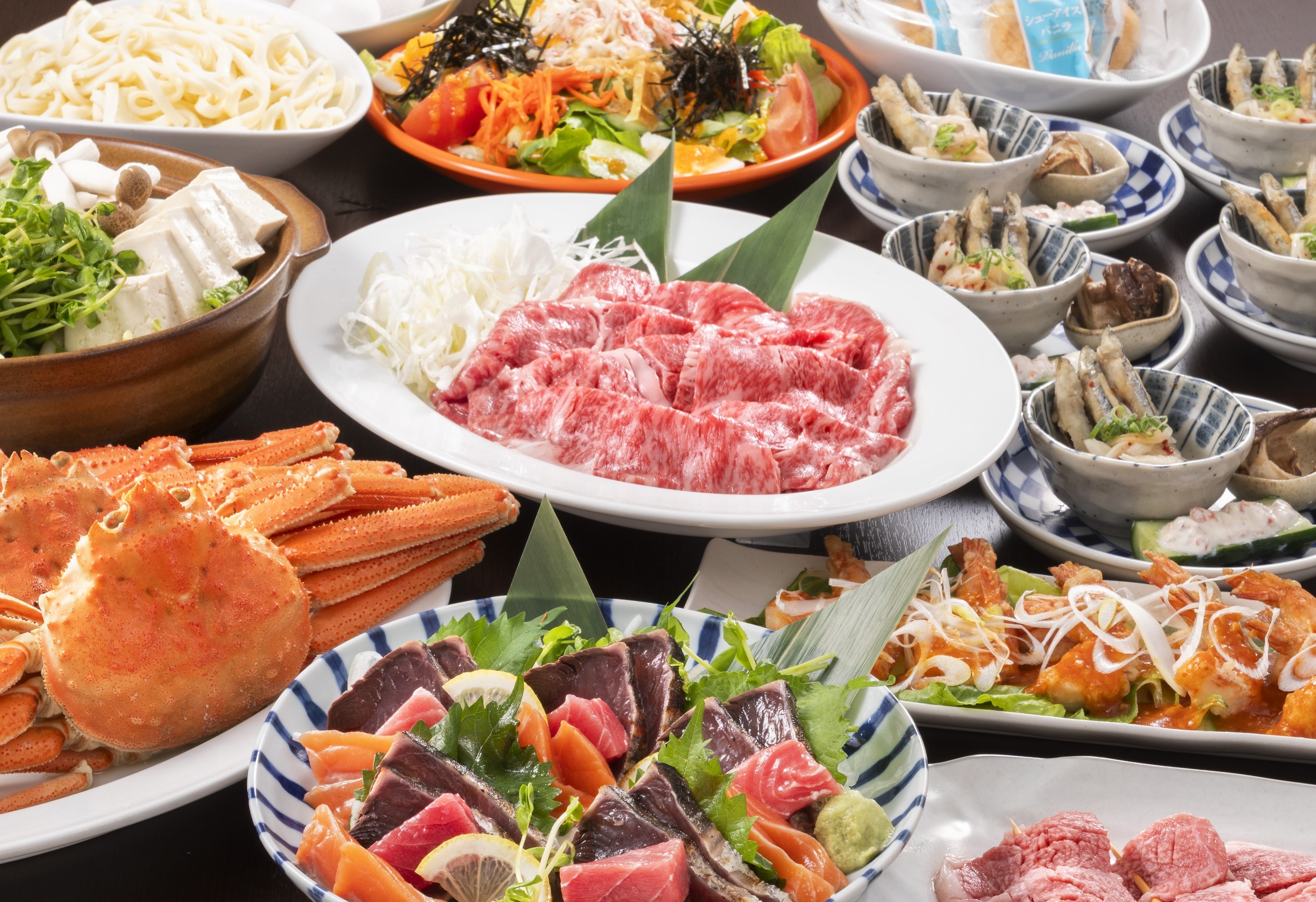 その他にも「厳選黒毛和牛コース」(税込5,000円)はメインの牛肉を近江牛にグレードアップ。「味の饗宴コース」(税込6,000円)はすき焼きの近江牛をなんと2倍で提供します。