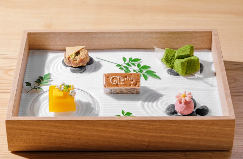 「和のアフタヌーンティー with クルミッ子」は、枯山水をイメージした木箱の真ん中に配置した「クルミッ子」はもちろんのこと「クルミッ子キャラメルのお団子」や「クルミッ子キャラメルと胡麻ショコラ 梅とベリーの酸味」をはじめ、フリーフローのドリンクセレクションにも「クルミッ子のキャラメルソース」を使用したドリンクをお付けし「クルミッ子」の魅力をたっぷりとお楽しみいただける内容でご提供いたします。