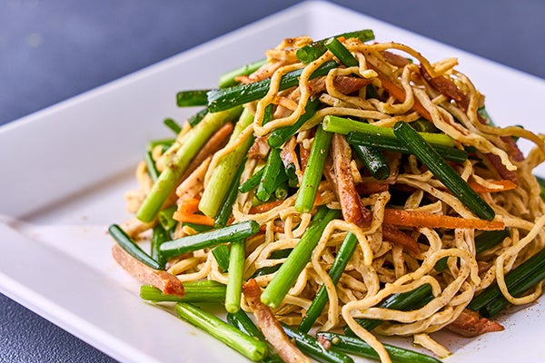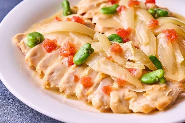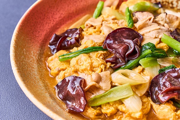 「愛媛県産青葱と豆腐干の山椒風味」は、シャキッと歯切れがよく、食味・香りがともに良い愛媛県産「青葱」と、豆腐に圧力をかけて水分を抜き乾燥させた「豆腐干」を和えて、程よく心地よい痺れが残る山椒で味付けをしました。讃岐の香川県三木町で大切に育てられた「さぬきくらげ」は卵と一緒に炒めました。味のクセが少なく、栄養豊富で低カロリー、かつ美味しさが詰まった一品をご賞味ください。