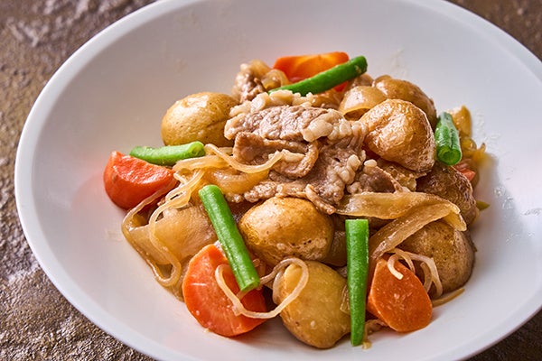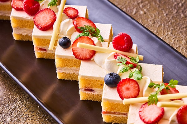 5月3日(土・祝)~5月6日(火・振休)はゴールデンウイーク期間として、より香川・愛媛県を感じていただける料理や、旬の素材などを使用した料理をご用意いたします。前菜では、愛媛県の郷土料理である小魚をすり身にして揚げた練り製品「じゃこ天」を茄子と合わせておろしポン酢であっさり召し上がっていただける冷やし煮物や、定番料理である「ジューシーローストビーフ低温調理 64℃仕上げ」は贅沢に和牛を使ってご提供いたします。西洋料理では、身が締まっていて旨みたっぷりの「愛媛県産真鯛」を赤ワインビネガー、香味野菜とともに煮詰め、色鮮やかな旬野菜を飾って仕上げました。日本料理では、丁寧に下ごしらえをし手間暇かけてしっかり味が染み込むまで煮込んだ、プロの味を堪能いただける「肉じゃが」をご用意しました。中国料理は、愛媛県の岩城島で採れたレモンの搾りかすを混ぜた餌を食べて育った「レモンポーク」を、黒豆を発酵させた調味料「豆鼓」と一緒に蒸しました。味噌のような独特の風味と香り、コクが肉の旨みをより引き出し、箸が進む一品です。スイーツでは、香川県の特産品「和三盆」を使った上品な甘さの苺のショートケーキや、その場で一つひとつ絞りながらご提供する瀬戸内レモンを使ったモンブランをご賞味ください。