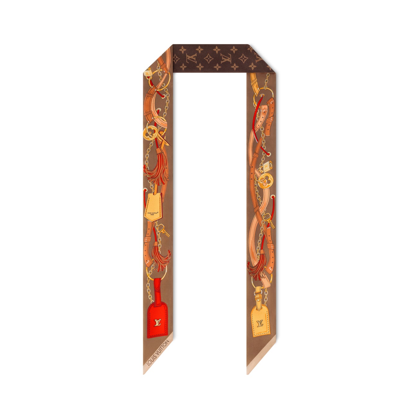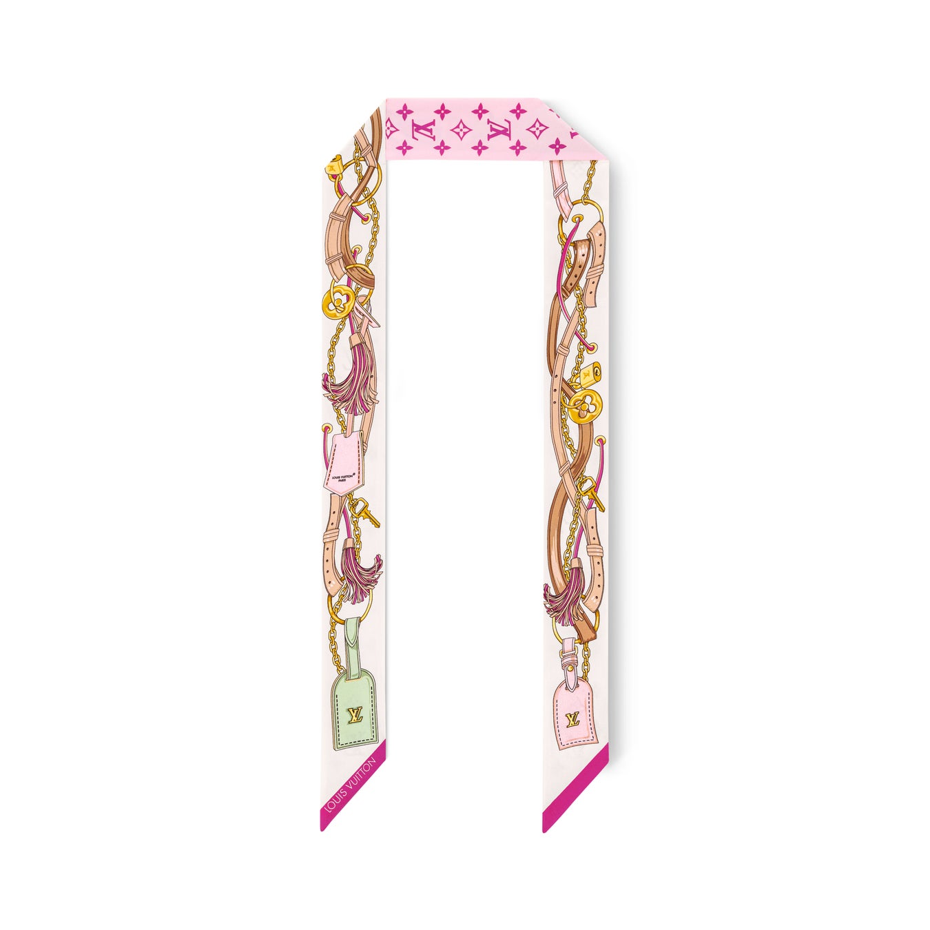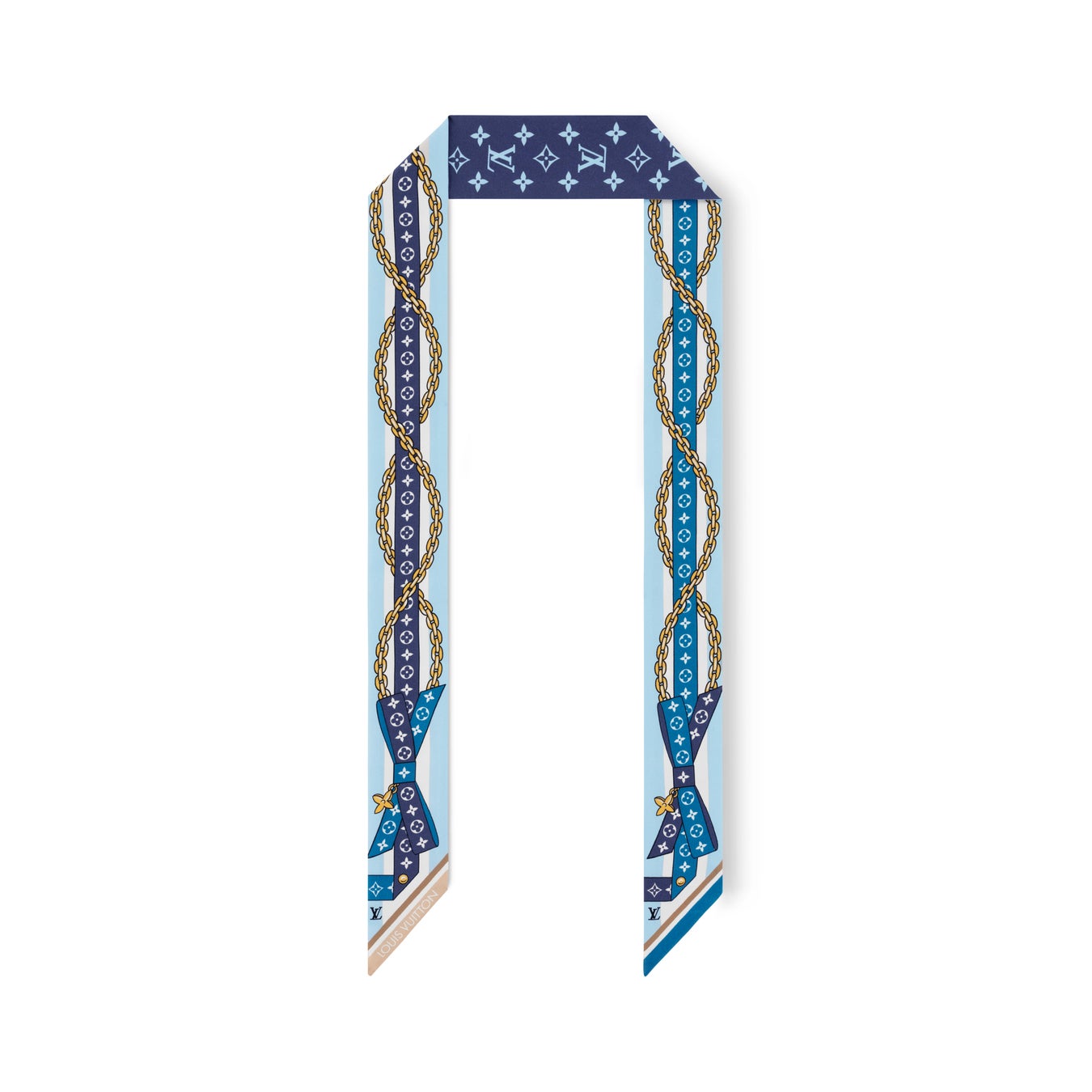 「バンドーBB·LV ボウ」は、アーティスティックなプリントには、細いリンクチェーンと絡み合いながらエレガントに結ばれた、モノグラム·フラワーのリボンが描かれています。首元や手首に巻いたり、バッグのハンドルに彩りを添えるのにぴったりの、あらゆる装いに上品なアクセントを加えるカラフルなアクセサリーです。