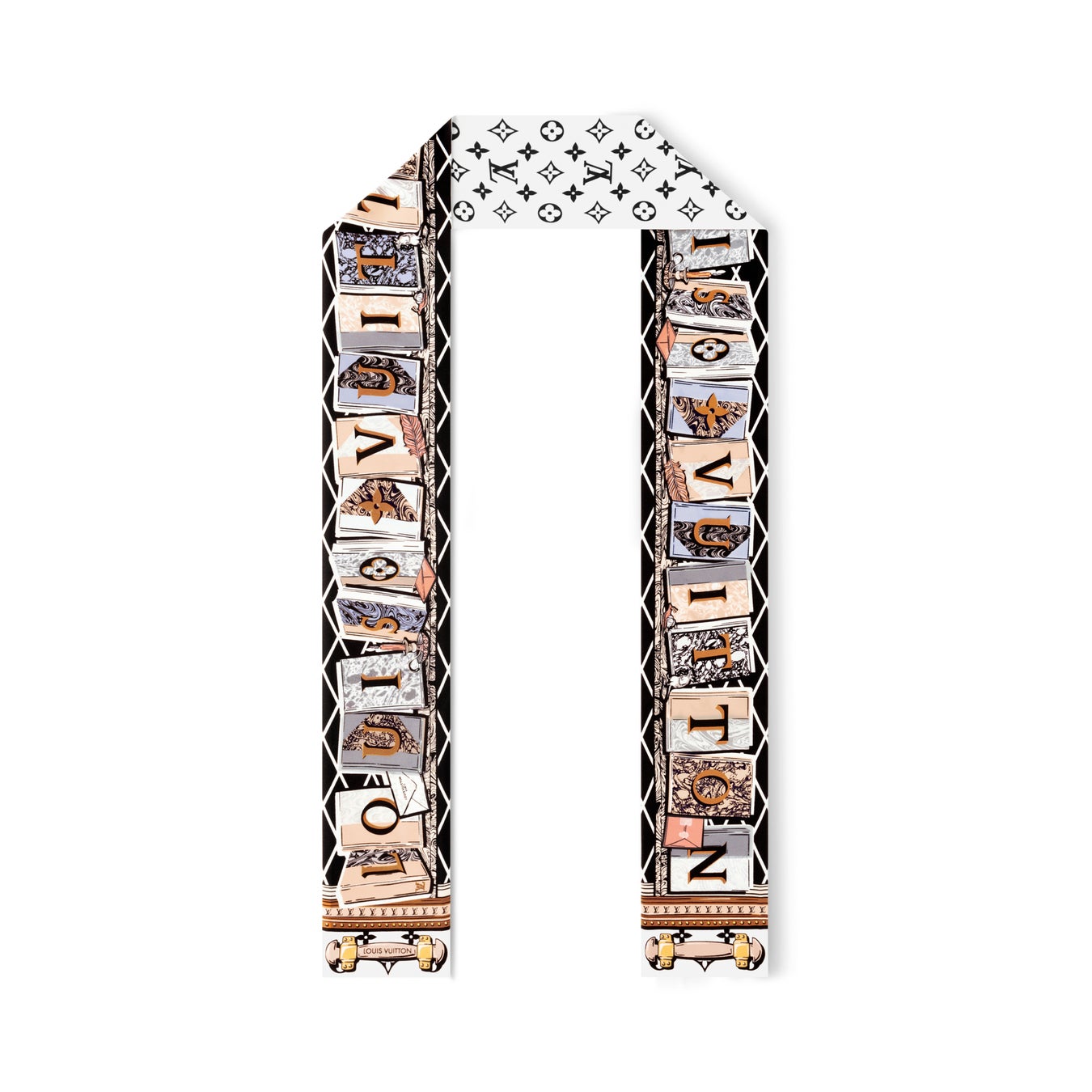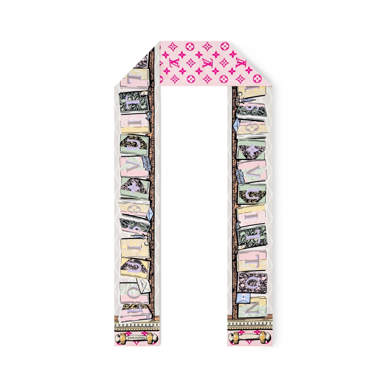 文学の魅力を讃え、スタイリッシュかつ多用途に楽しめる斬新なデザインのバンドー「バンドー·LV ライブラリー」。「Louis Vuitton」シグネチャーで彩った本が並ぶアーティスティックなプリントを精緻にあしらい、裏面はメゾンの伝統的なモノグラム·パターンで仕上げました。端の部分に描いたトランクスタイルの金具が、ルイ·ヴィトンのトランク作りのレガシーを彷彿させます。