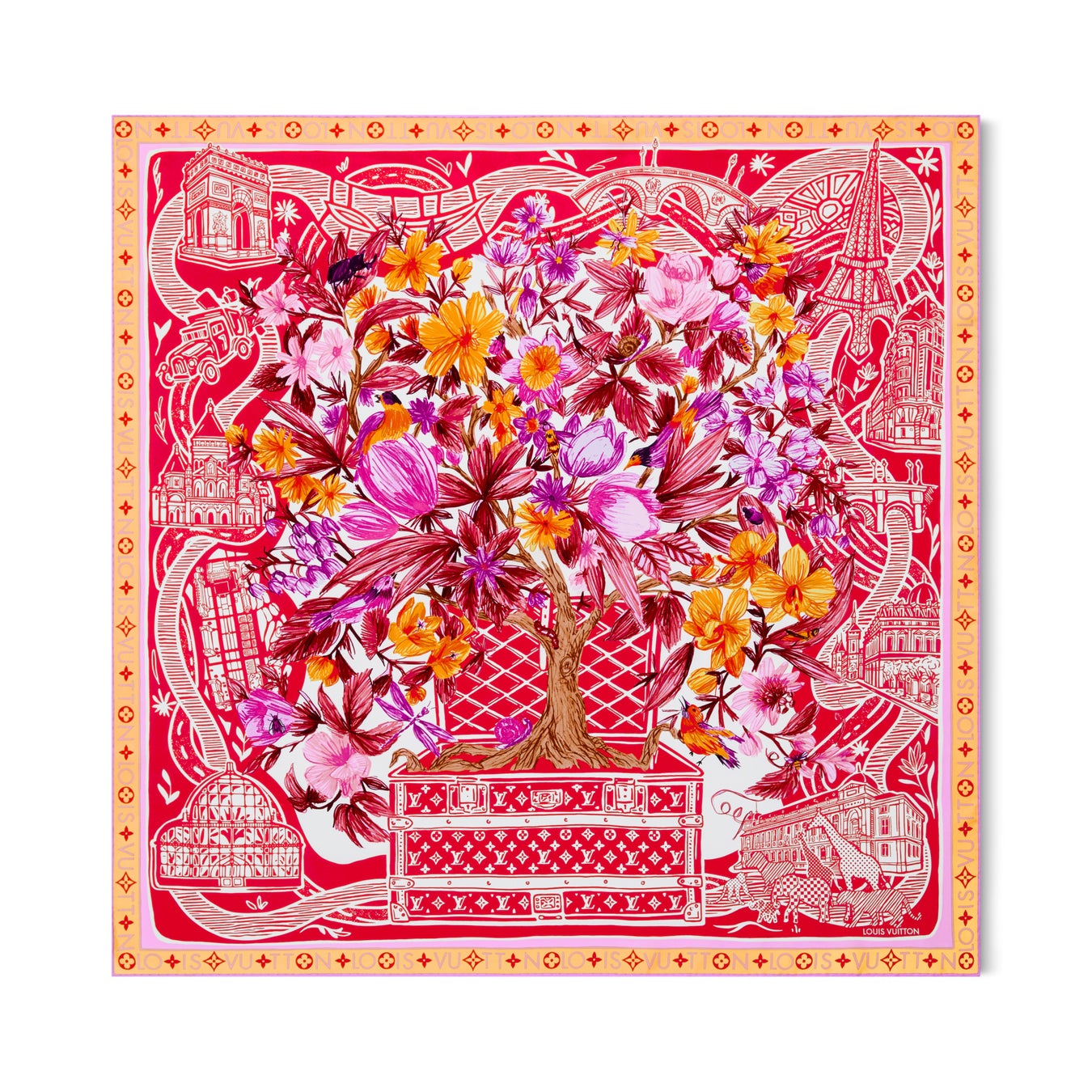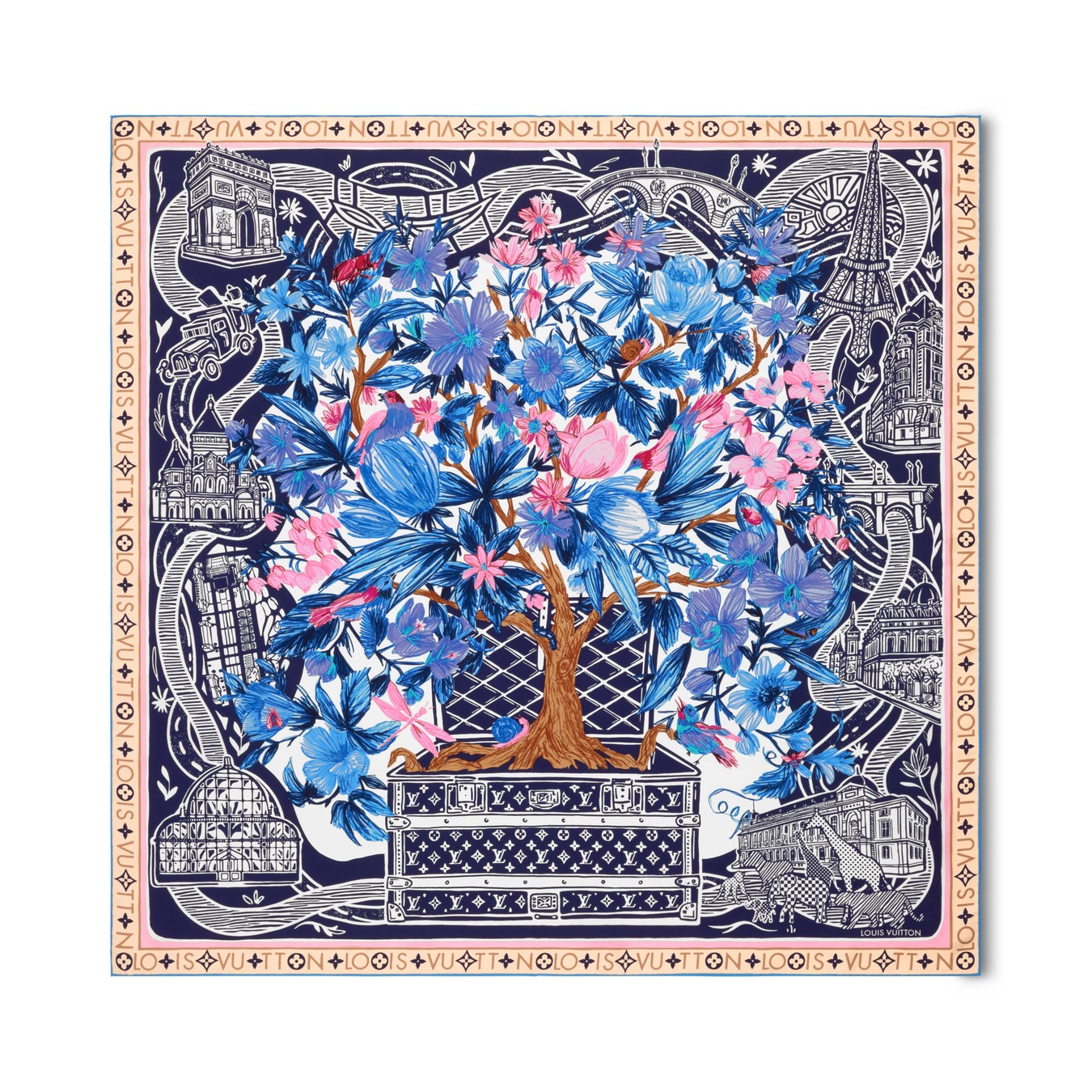 自然の素晴らしさをエレガントに讃え、歴史あるパリの植物園にちなんで名付けられた「カレ90·ジャルダン デ プラント」。複雑なデザインの中央に描かれたルイ·ヴィトンのトランクに根を張る雄大な木を、咲き誇る花々とパリのランドマークのイラストが囲みます。あらゆる装いにロマンティックな魅力を添える美しいアクセサリーです。