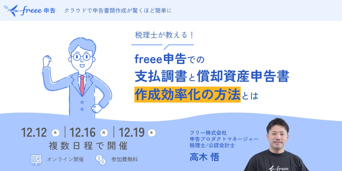freeeでは、12月に支払調書と償却資産申告書の作成に関するセミナーをオンラインで開催します。