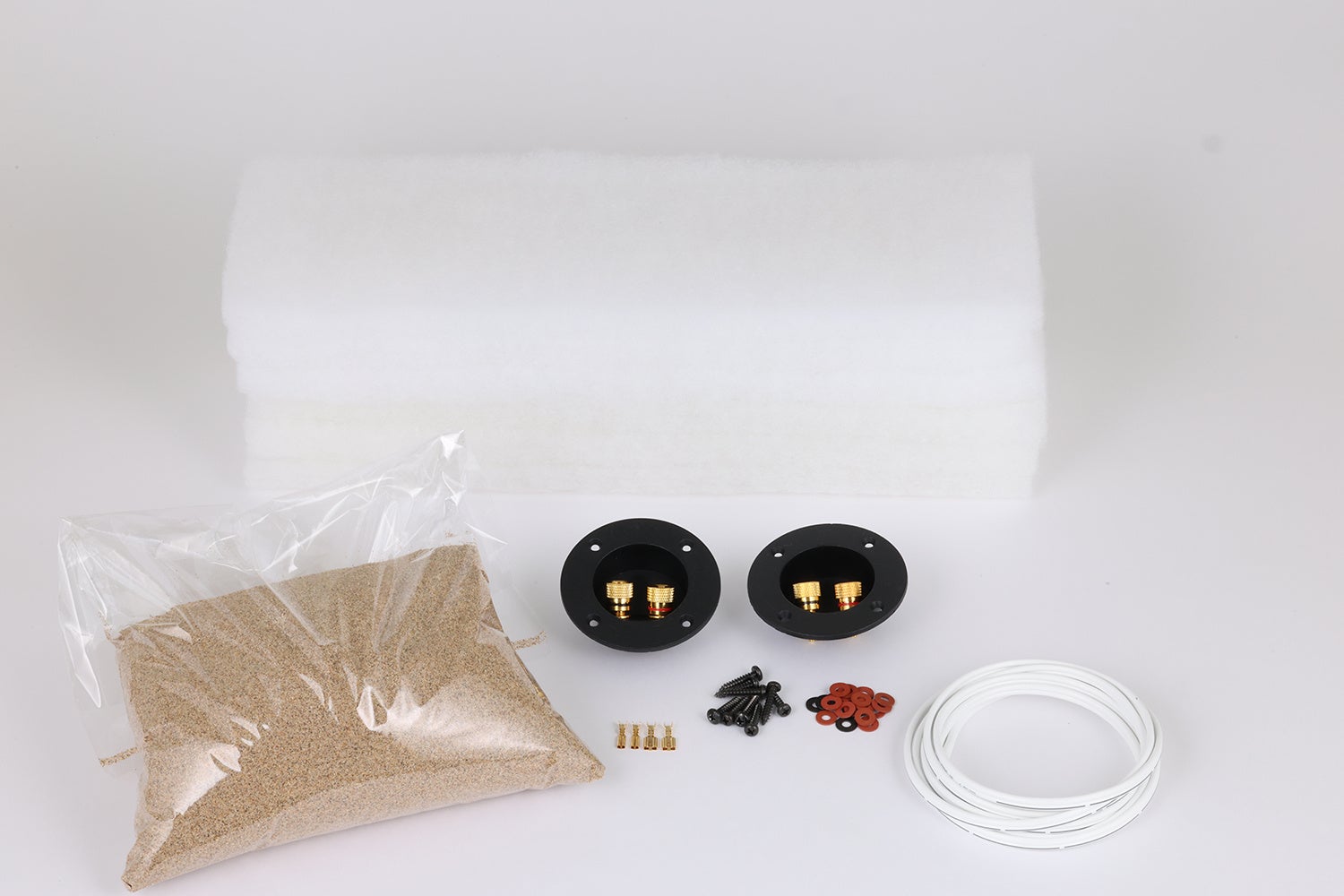 本セットには、ステレオ2台1組分のヤマハ9cmフルレンジスピーカーユニット、エンクロージャー用板材、内部配線材、ターミナル、吸音材、ファストン端子、ネジ、ワッシャーなどが含まれ、組立手順を記載した組立説明書も同梱いたします。(組立に必要な道具類はお客様でご用意が必要です)