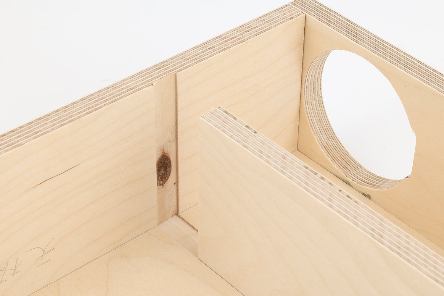 小澤隆久氏の図面をもとに、高い加工技術でオリジナルのスピーカーシステムを開発・発売している山越木工房(栃木県日光市)にバーチ合板の加工を依頼。