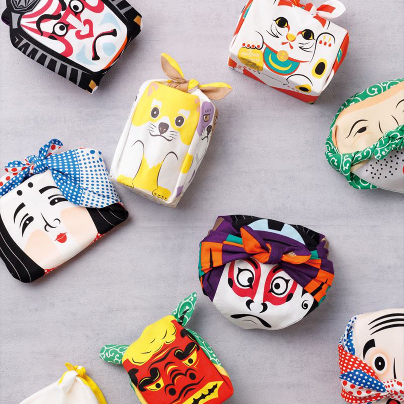 結んで楽しい。広げて楽しい。包んで楽しい。見て楽しい。COCHAE(コチャエ)ⅹMUSUBIの包んで完成する風呂敷。大好きなドッグフードを囲んだ4匹のイヌとネコたちが、包み方によって様々な表情で現れたり、「かわいい開運」をテーマにしたデザインが、ギフトに彩りを添えてくれます。
