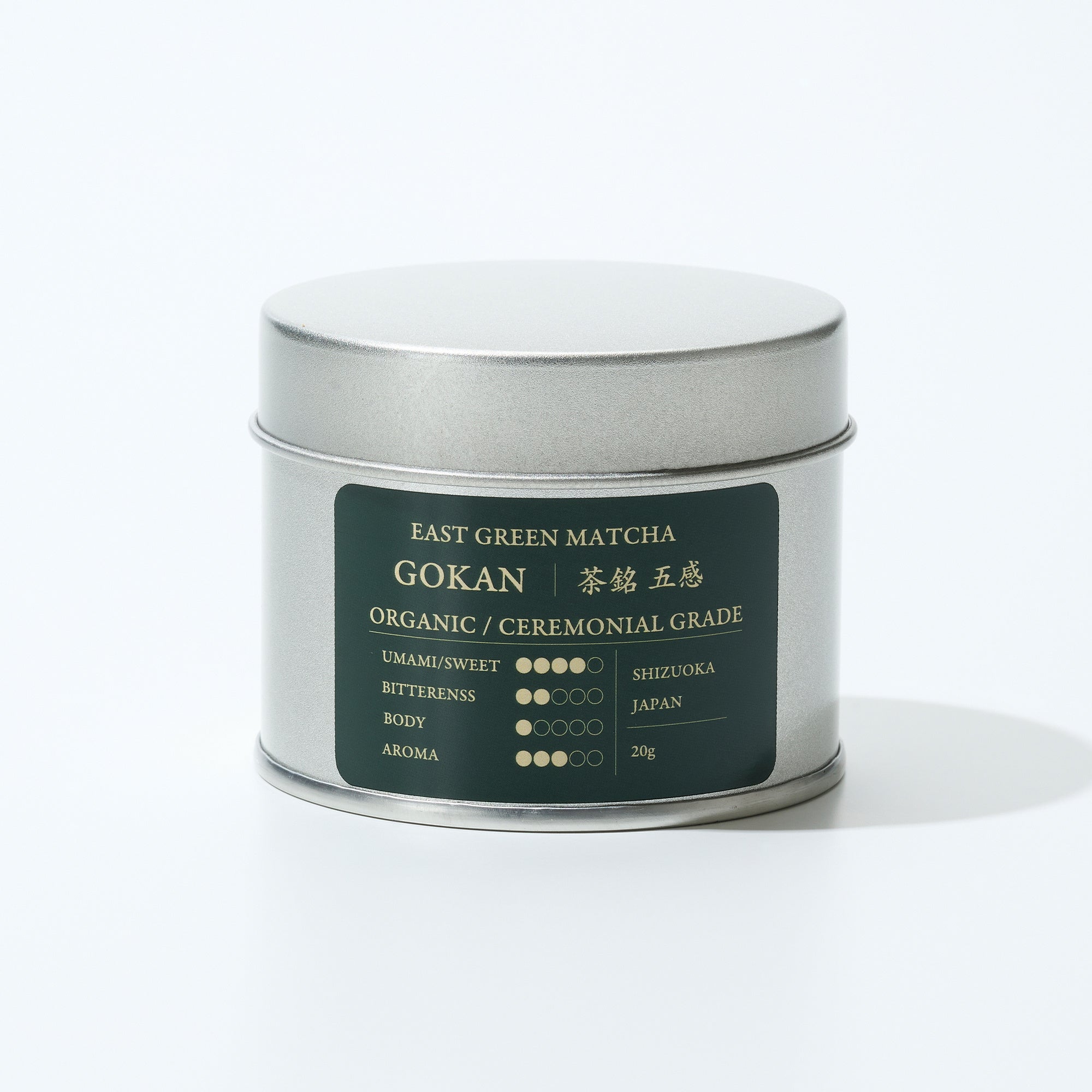 静岡県島田市、標高600m以上の通称「天空茶園」にて、有機栽培された茶葉。初摘みの一番茶葉のみを贅沢に使用した高級オーガニック抹茶「五感」は、高地特有の寒暖差や濃霧が茶葉に旨みをもたらし、苦味の少ない爽やかな味わいが特徴です。