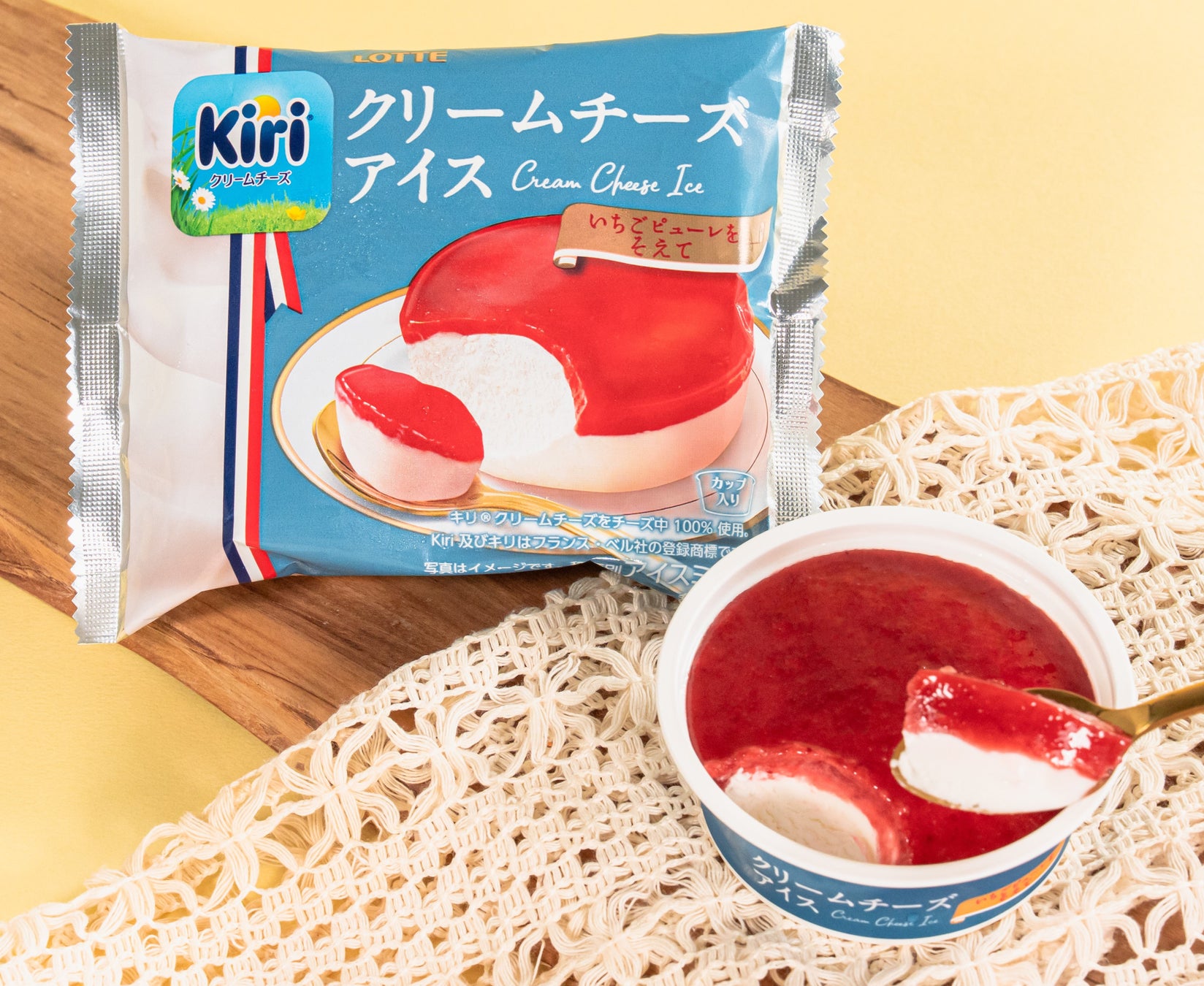 【内容】Kiri®クリームチーズをチーズ中100%使用したクリームチーズアイスに、チーズと相性が良いいちごピューレをのせました。濃厚クリームチーズと、甘酸っぱいいちごピューレの相性が抜群です。
