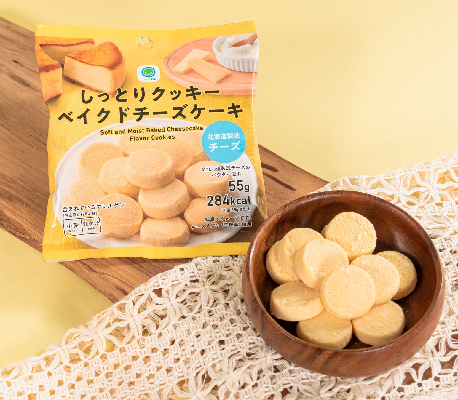 【内容】まるでベイクドチーズケーキのようなコクのあるチーズの味わいで、しっとり食感のクッキーです。北海道製造チーズのパウダーを使用しています。※数量限定
