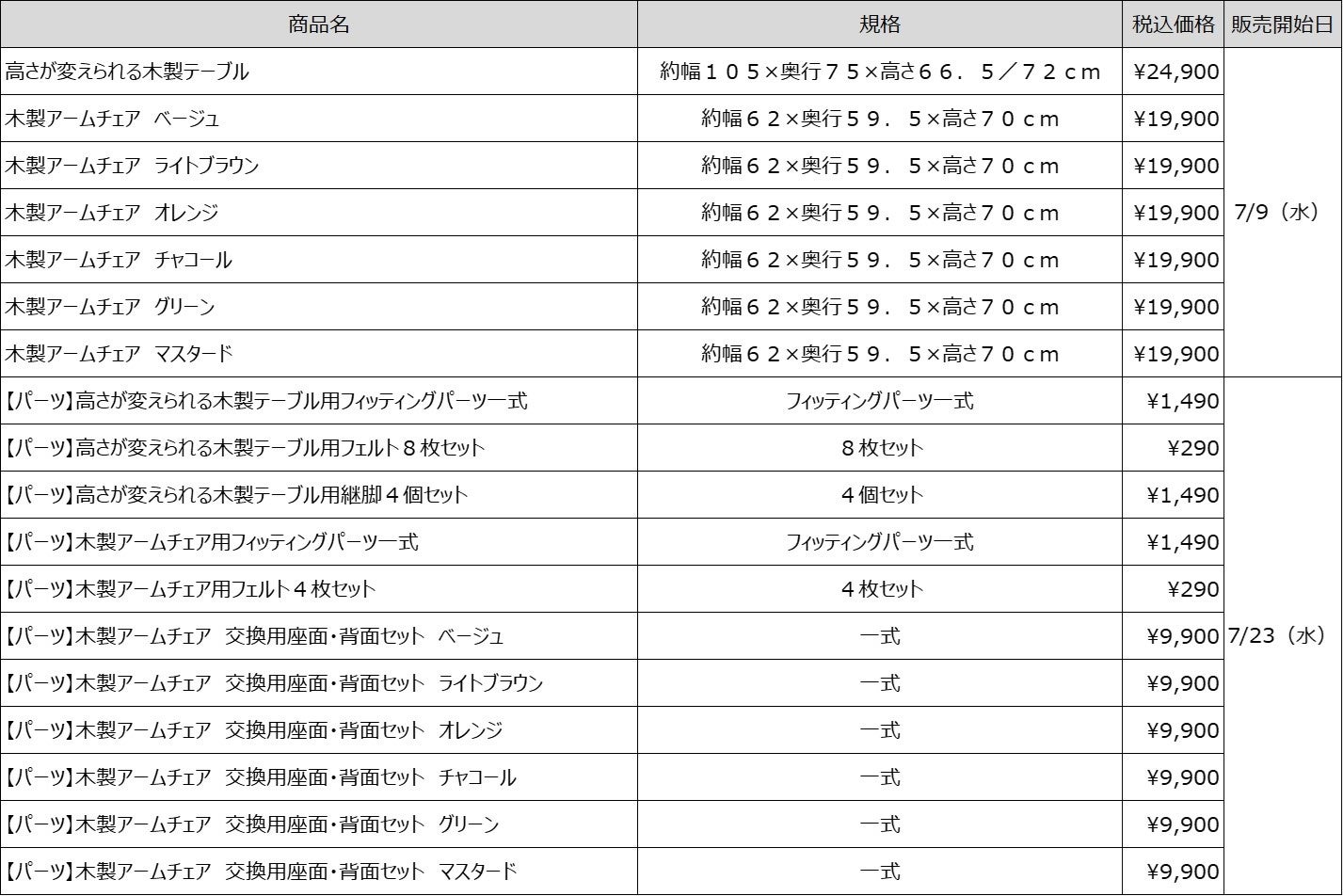 無印良品 高さが変えられる木製テーブルと、木製アームチェアを発売