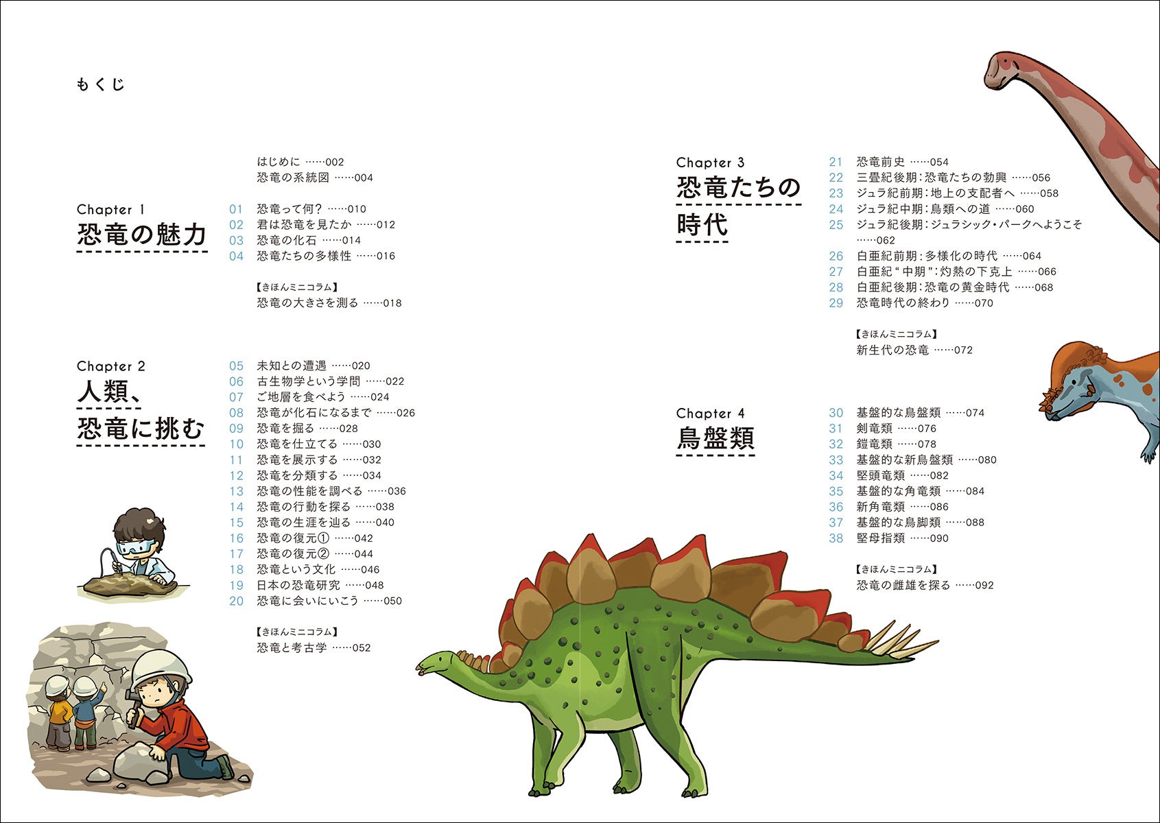 研究史や研究手法、恐竜が生きた時代、系統ごとの生態について網羅的に紹介し、恐竜をより深く楽しむため基本的な科学知識を詰め込みました。