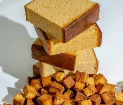 “筋肉カステラ”というユニークなネーミングのカステラは、キックボクシングのジムに通う店主が、減量と体力作りに苦心するアスリートを見て、減量中でも食べられる高タンパク質なお菓子を、と作ったのがきっかけ。種類は、しっかり食感の“ハード”とふんわりやわらかな“ソフト”の2つ。また、カステラとラスクは、小麦粉の代わりに米粉を使ったグルテンフリータイプも。