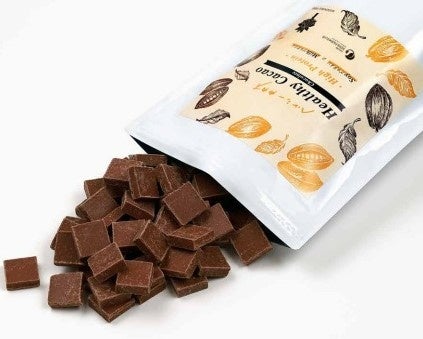 業務用チョコの生産量が世界第3位の「不二製油」の 開発チームが、1年半もかけて完成させたプロテイン入りチョコ。ひと口サイズで食べやすく、6粒で牛乳100ml分のタンパク質3gも配合。1日に食べる目安は11粒。ミルクチョコ風味で、少量なのに満足できるおいしさです。