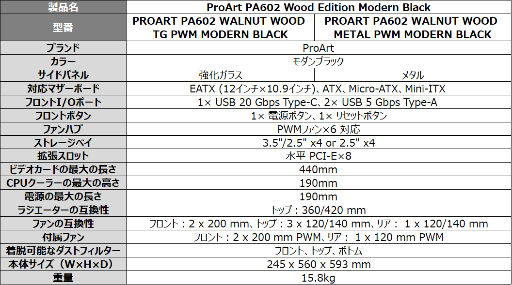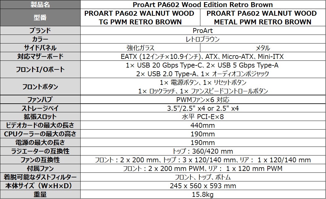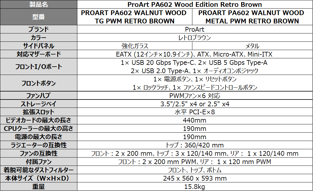 製品ページ(メタルパネル):https://www.asus.com/jp/motherboards-components/cases/proart/proart-pa602-wood-edition-modern-black-metal-panel/