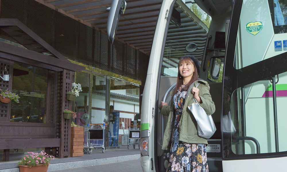 送迎バスのご利用により、公共交通機関を乗り継ぐ必要がなく、重い荷物を持っての移動も安心♪