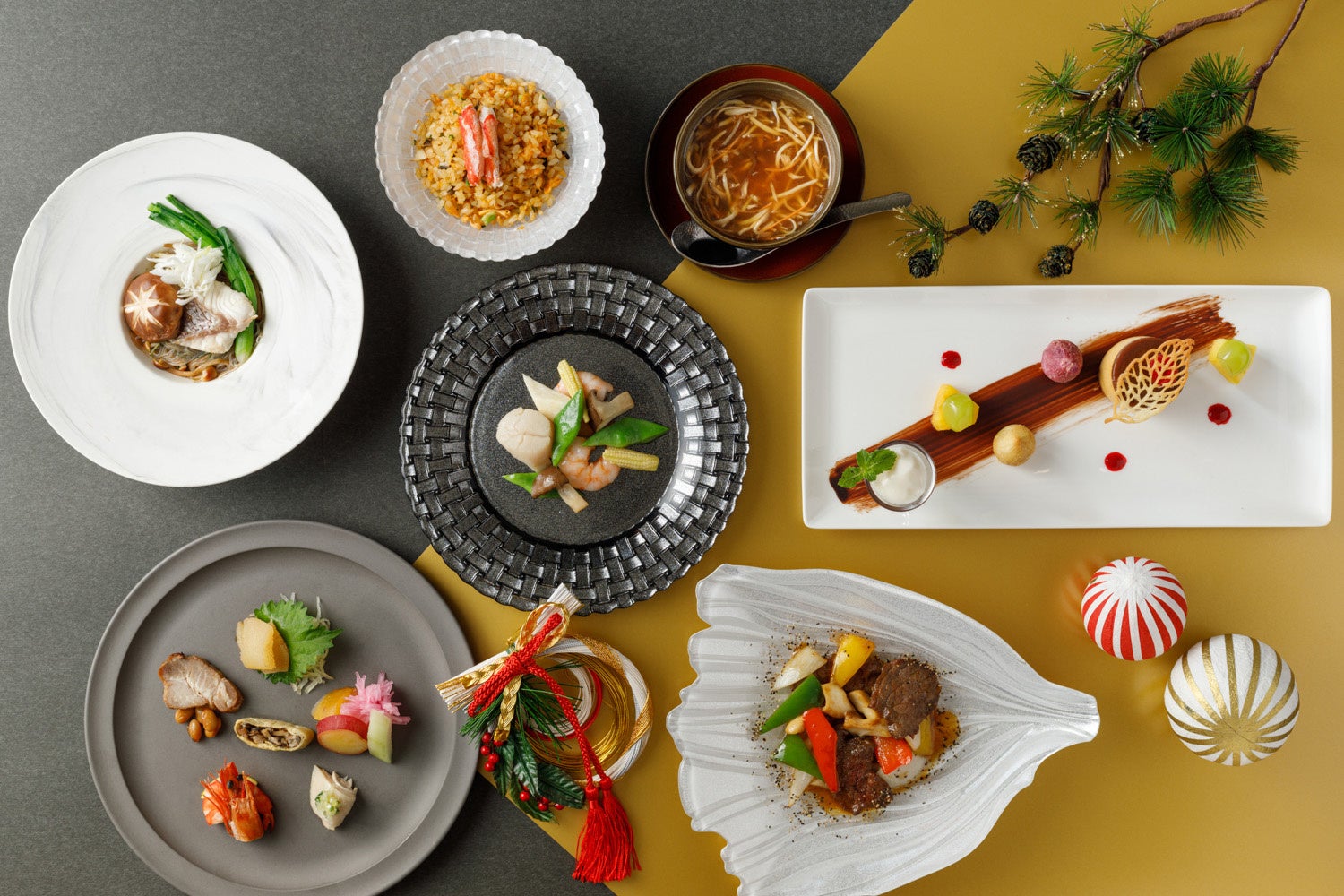 お正月ディナー付き宿泊プランお正月の華やかな食材をとり入れ、創作進化系中華に和のエッセンスをプラスした特別ディナーコ ースをお楽しみいただける宿泊プランです。バルコニー付きの開放的なお部屋で、新しい年の訪れ を祝う大切なひとときをごゆっくりお過ごしください。