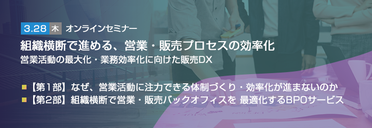 【トランスコスモスオンラインセミナー】組織横断で進める、営業・販売プロセスの効率化 営業活動の最大化・業務効率化に向けた販売DXを3/28(木)に開催