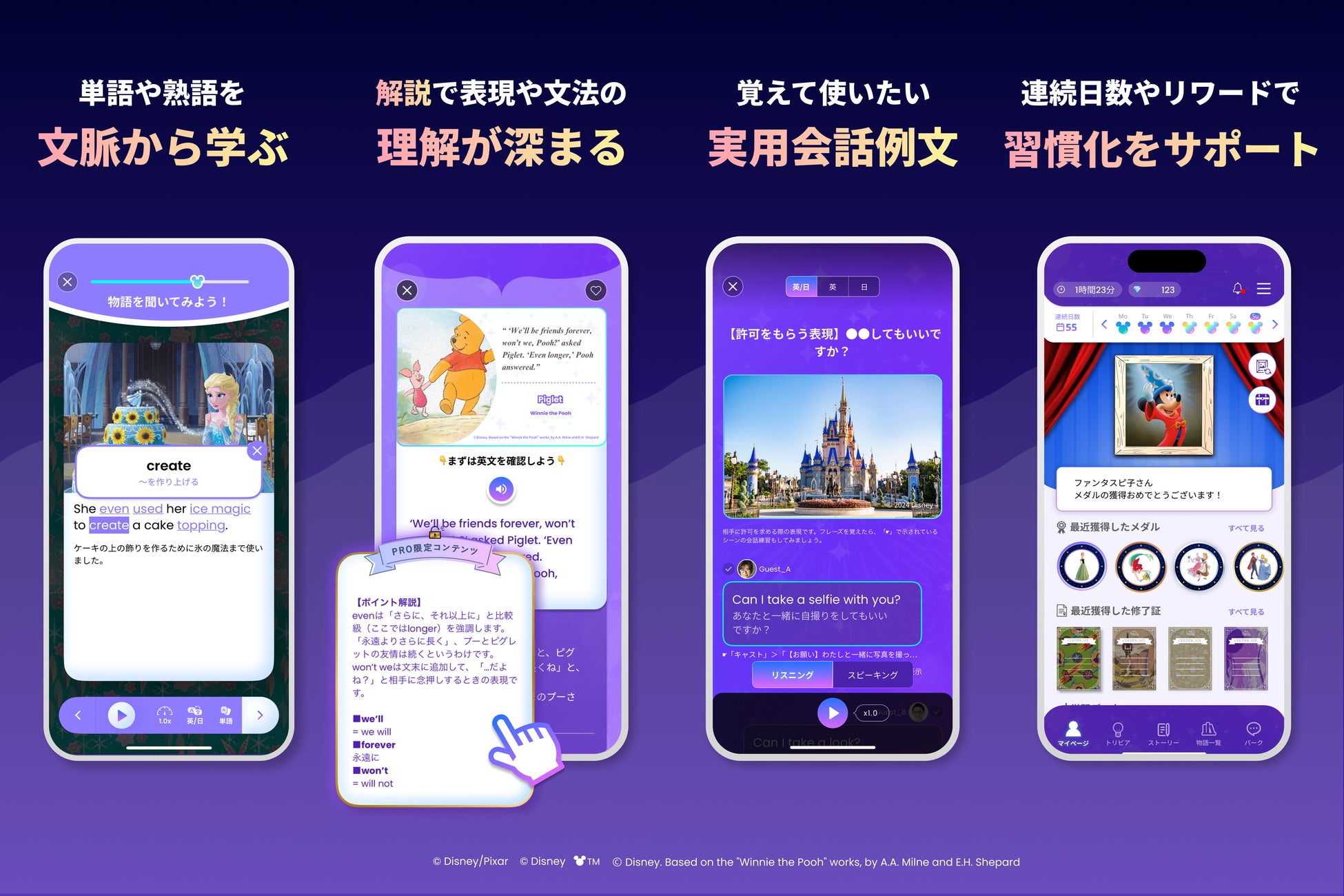 ※「ディズニー ファンタスピーク」は、株式会社アルク開発・提供、ウォルト・ディズニー・ジャパン株式会社監修の英語・英会話アプリです。