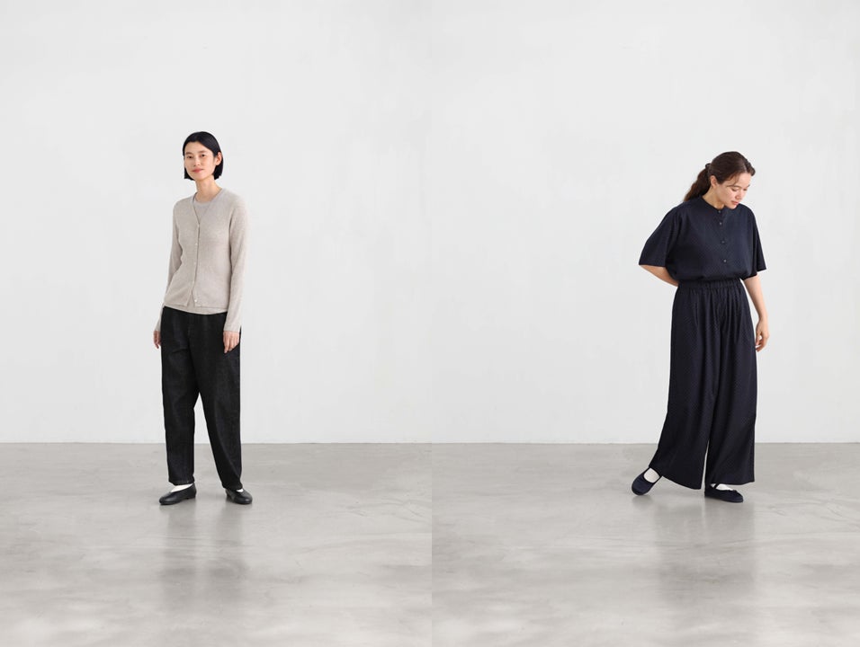 リヨセルを使用することで、とろみのある軽やかな着心地を実現しました。晩夏の暑い時期から秋まで着用できるワンピースやブラウス、イージーワイドパンツを展開します。