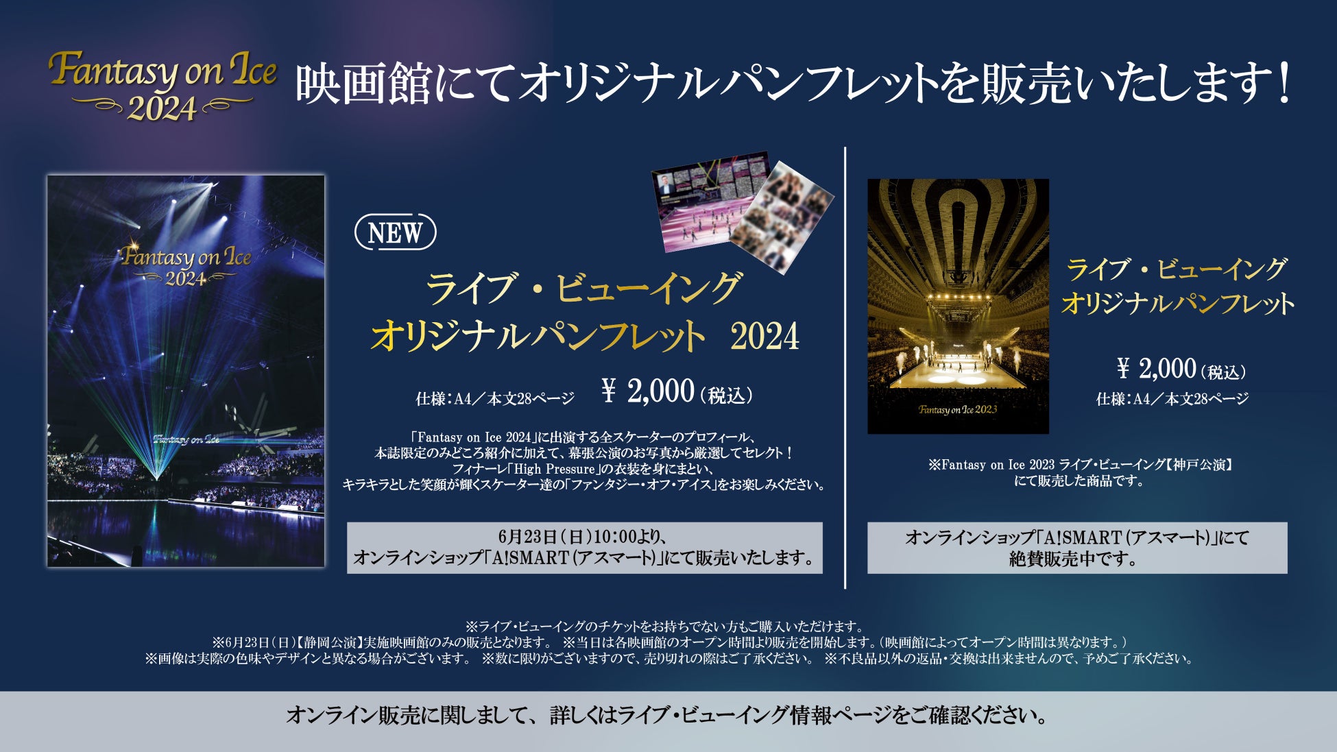 「ライブ・ビューイング オリジナルパンフレット 2024」は、6月23日(日)開催「Fantasy on Ice 2024 ライブ・ビューイング【静岡公演】」実施映画館およびオンラインショップ「A!SMART」にて販売いたします。