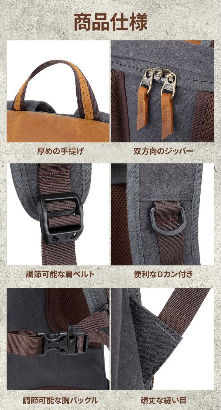 【撥水機能/三脚固定ベルト/USB充電ポート/アウトドアの使用に】