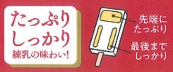 - 先端にたっぷりと練乳ソースが入っており、練乳の濃厚な味わいが最後までしっかり楽しめます。