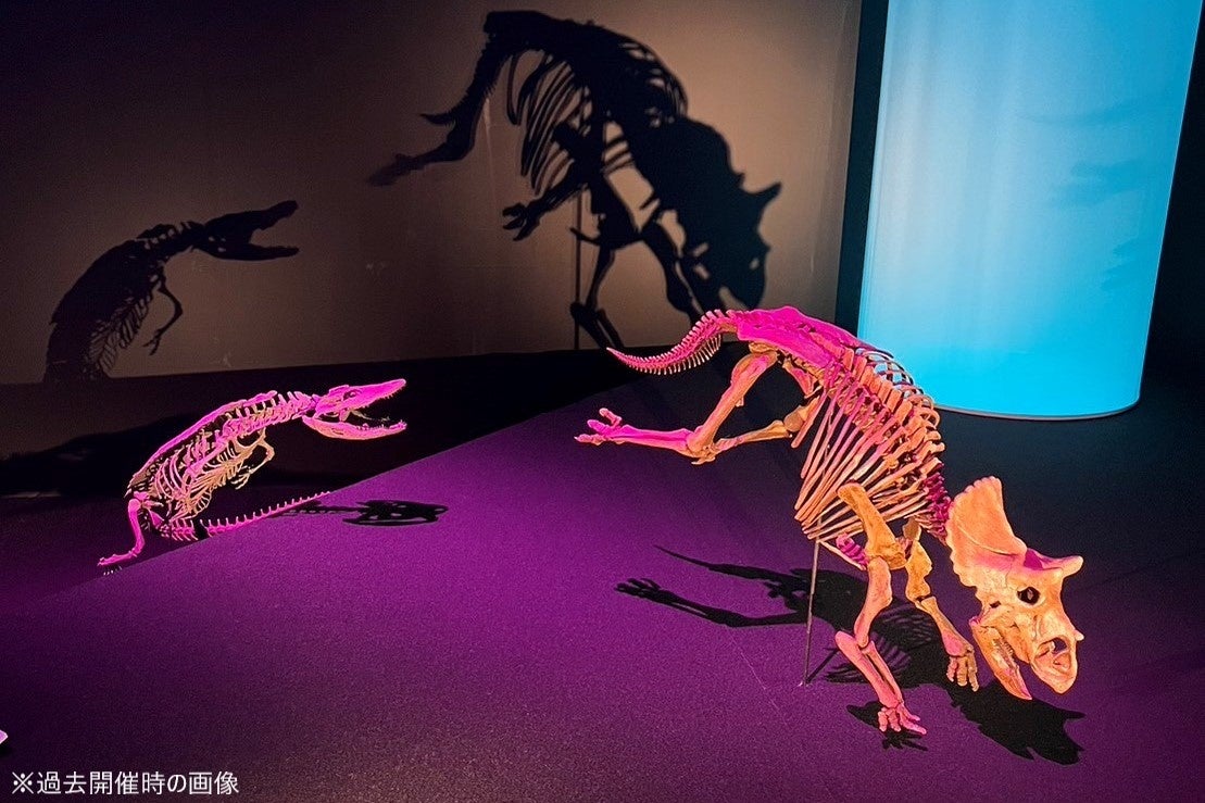 失われた大陸「ララミディア大陸」を舞台に、多彩な骨格標本と最新の技術を駆使し、科学的な視点から恐竜の姿に迫ります。幼いトリケラトプスの子どもと一緒に森を歩きながら、恐竜たちが生きる世界に没入する体験ができる新しい恐竜展です。