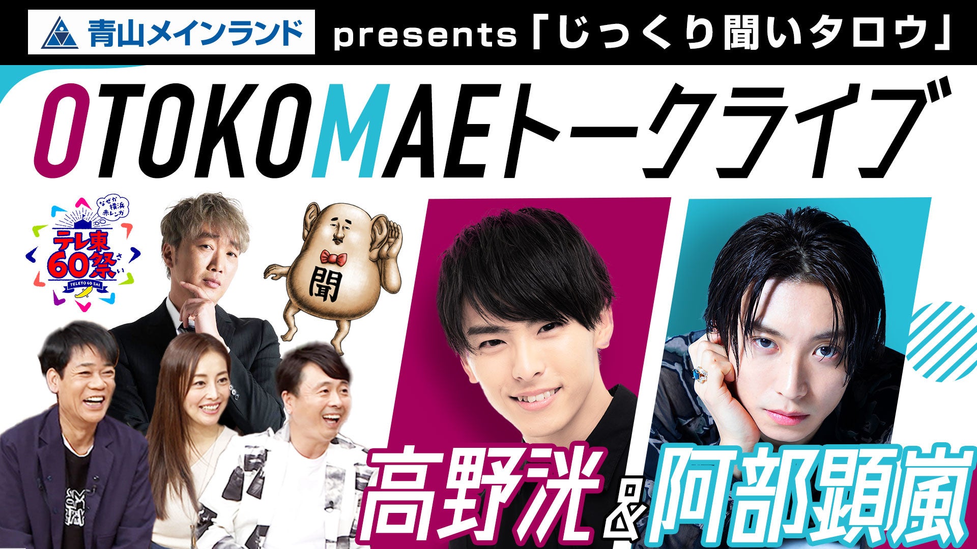 ステージイベントの続報も解禁。「伊集院光&佐久間宣行の勝手に「テレ東批評」」などテレ東の人気番組が大集合し、見逃せないイベントが目白押しです。さらに、高野洸、阿部顕嵐がゲスト出演する青山メインランドpresents じっくり聞いタロウ「OTOKOMAEトークライブ」について、配信チケットの発売が決定しました!残念ながら会場チケットをお買い求めいただけなかった方も、ぜひ配信にてお楽しみください。
