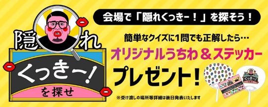 会場各所に隠された「くっきー!」アイコンにFANYアプリをかざすと動画が再生、動画を見れば分かる簡単なクイズに1問でも正解したら、オリジナルうちわとオリジナルステッカーをプレゼント!(各日、先着1000名まで)