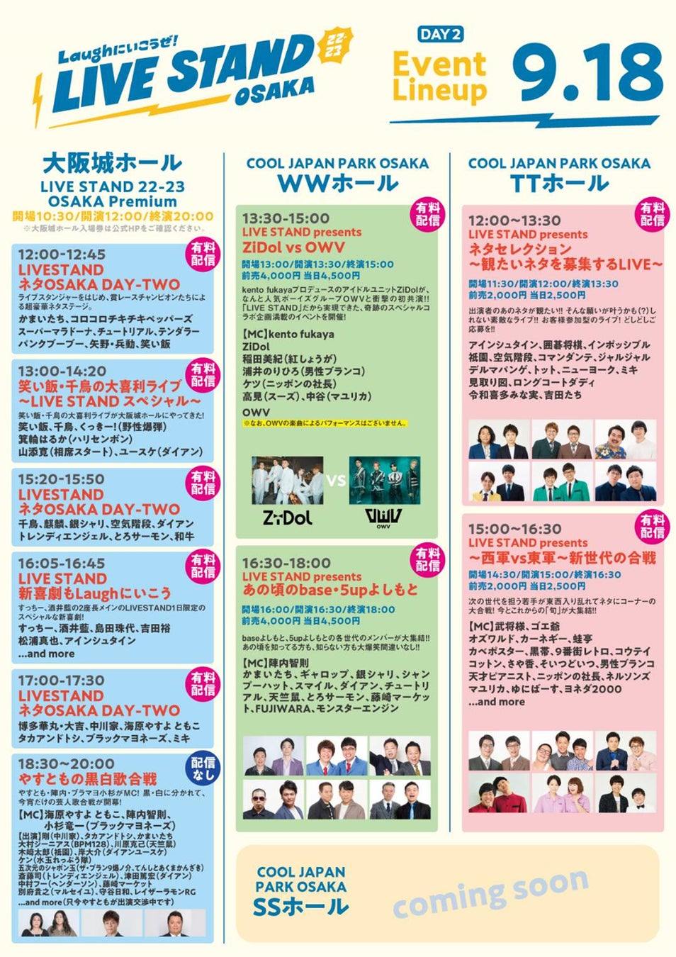 「LIVE STAND 22-23 OSAKA」タイムテーブル 9月18日(2日目)