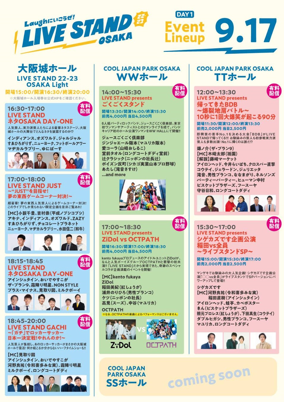 「LIVE STAND 22-23 OSAKA」タイムテーブル 9月17日(1日目)