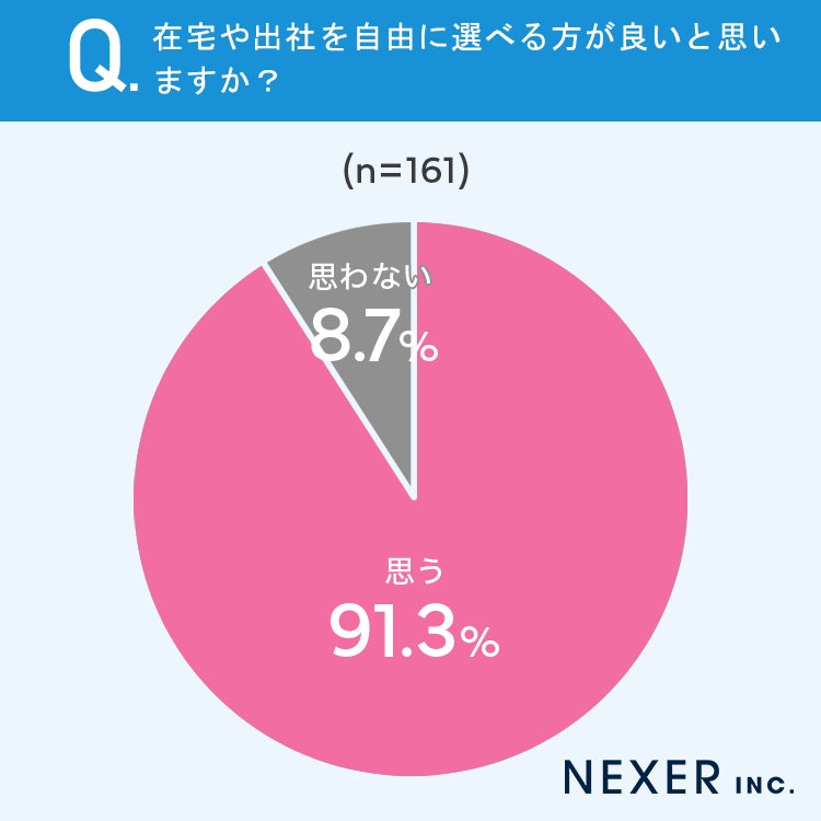 91.3%とほとんどの方が、在宅や出社を自由に選べる方が良いと「思う」と回答しています。