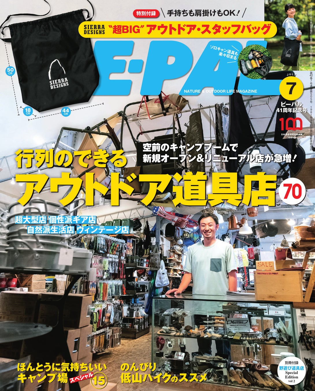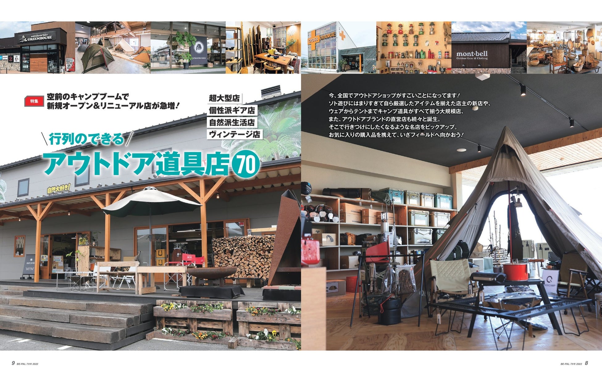 さらに、今号の大特集は「空前のキャンプブームで新規オープン&リニューアル店が急増! 行列のできるアウトドア道具店70」。