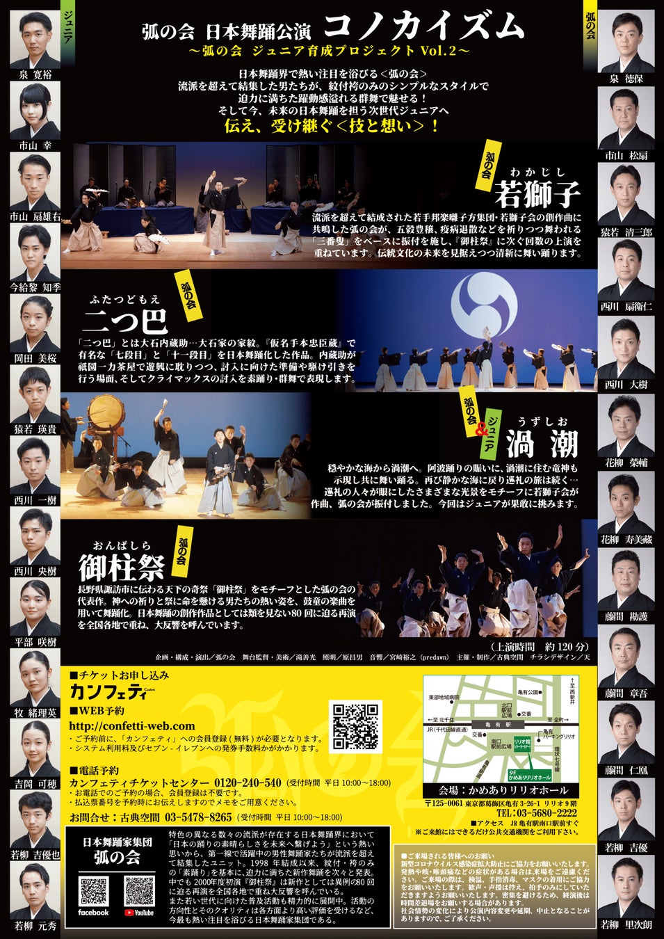 本公演は《次世代への継承》を主軸とした企画【ジュニア育成プロジェクト公演】と銘打ち、昨年東京銀座にて開催され大好評を得、本年もVol.2公演として【かめありリリオホール】に弧の会&ジュニアが登場!!