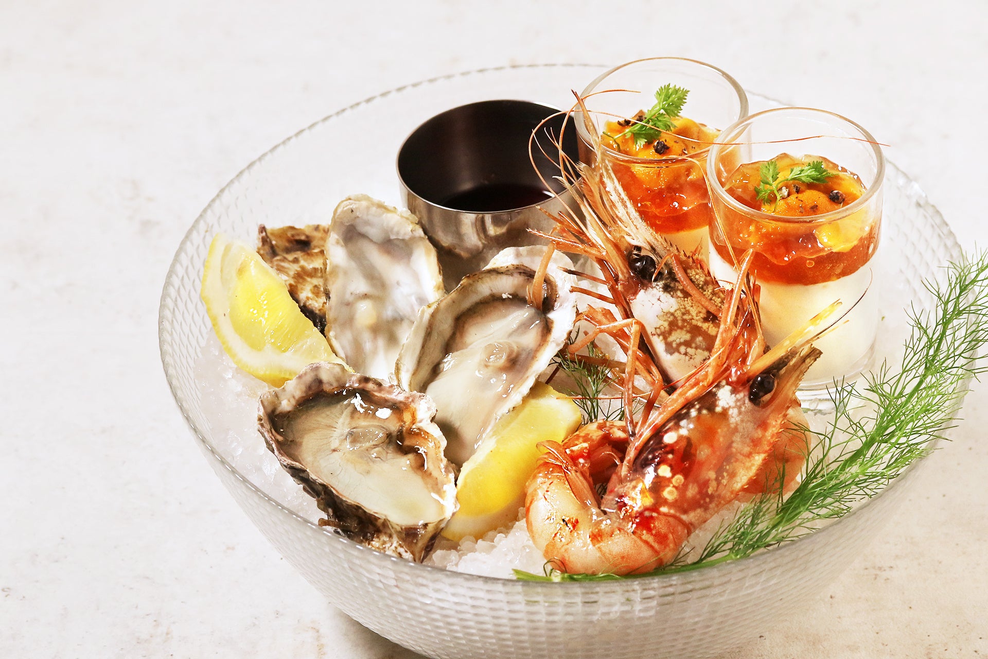 ◆乾杯シーフードプラッター 坂越産牡蠣/牡丹エビ/雲丹 3200円(税込)