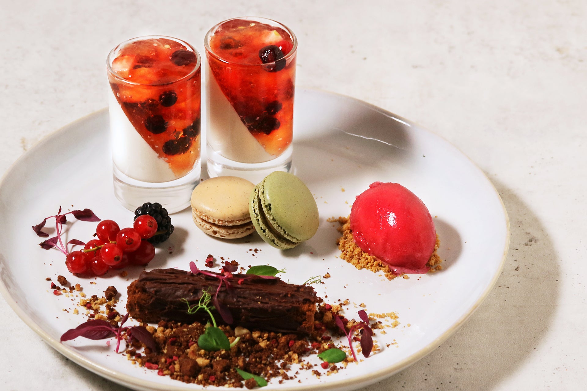 ◆Xmasドルチェプレート ブッシュドノエル/苺のパンナコッタ/マカロン 2500円(税込)