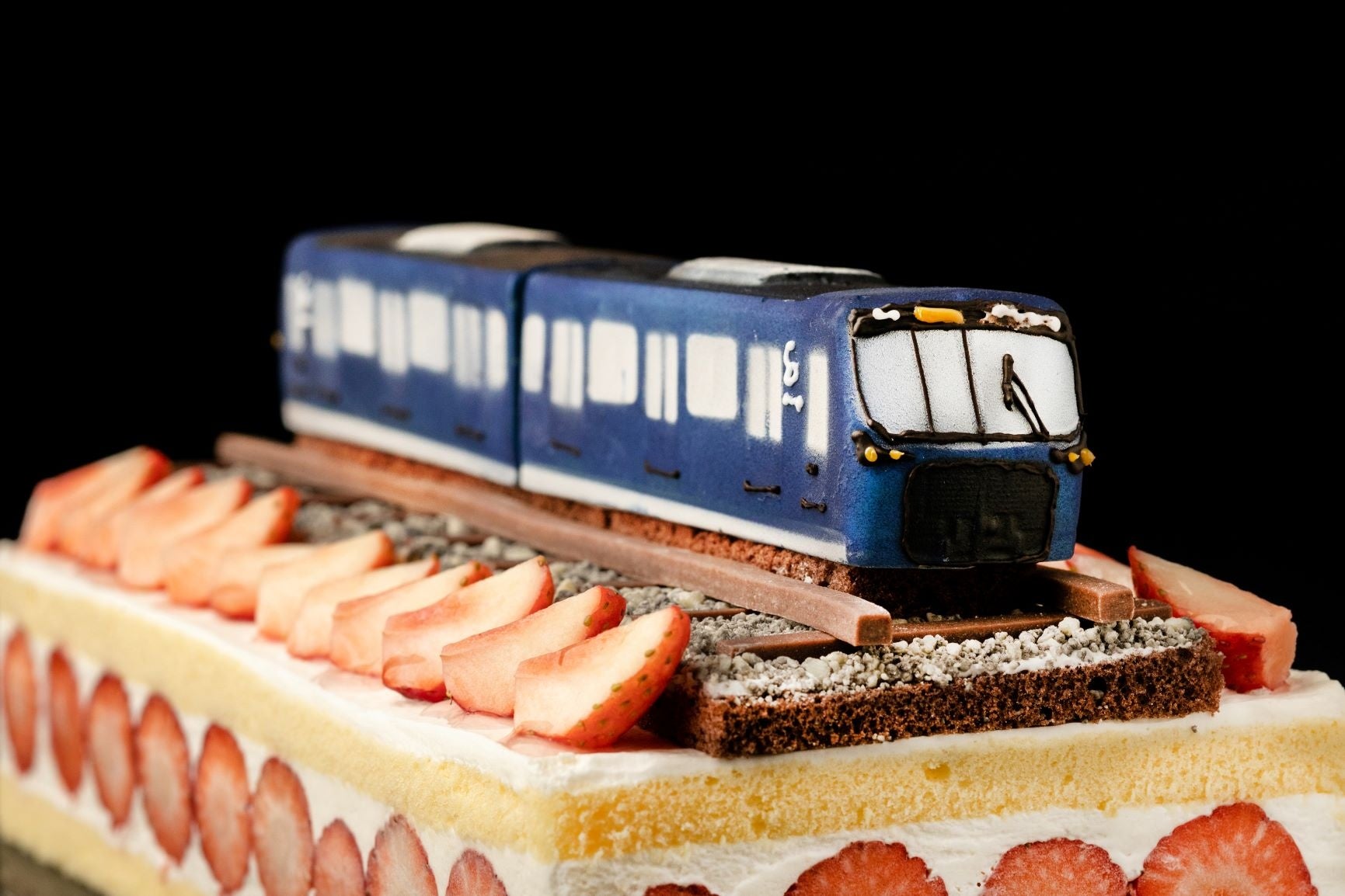 (1)「相鉄 21000 系トレインケーキ」 相鉄線の人気車両 21000 系をイメージしたケーキです。 「YOKOHAMA NAVYBLUE(ヨコハマネイビーブルー)」の車体を再現。 ※3 日前までのご予約制となります。 ※数量限定。 【お渡し期間】2023 年 4 月 1 日(土)~6 月 30 日(金)