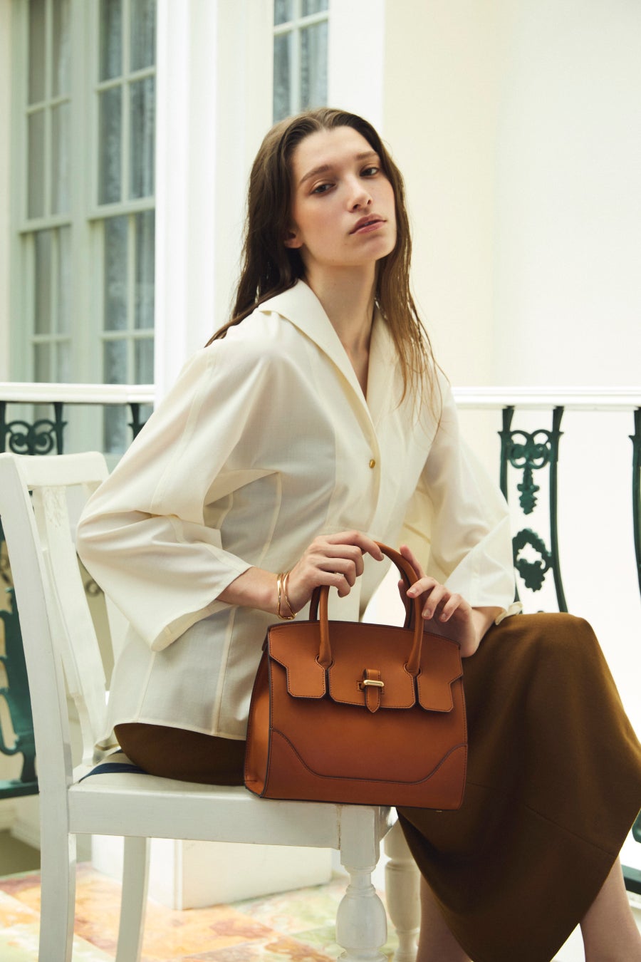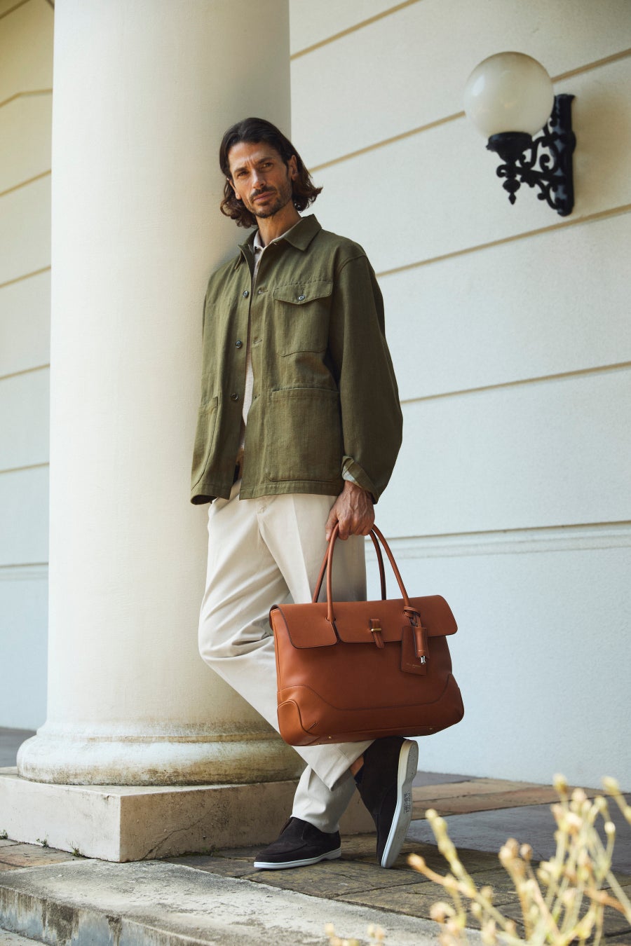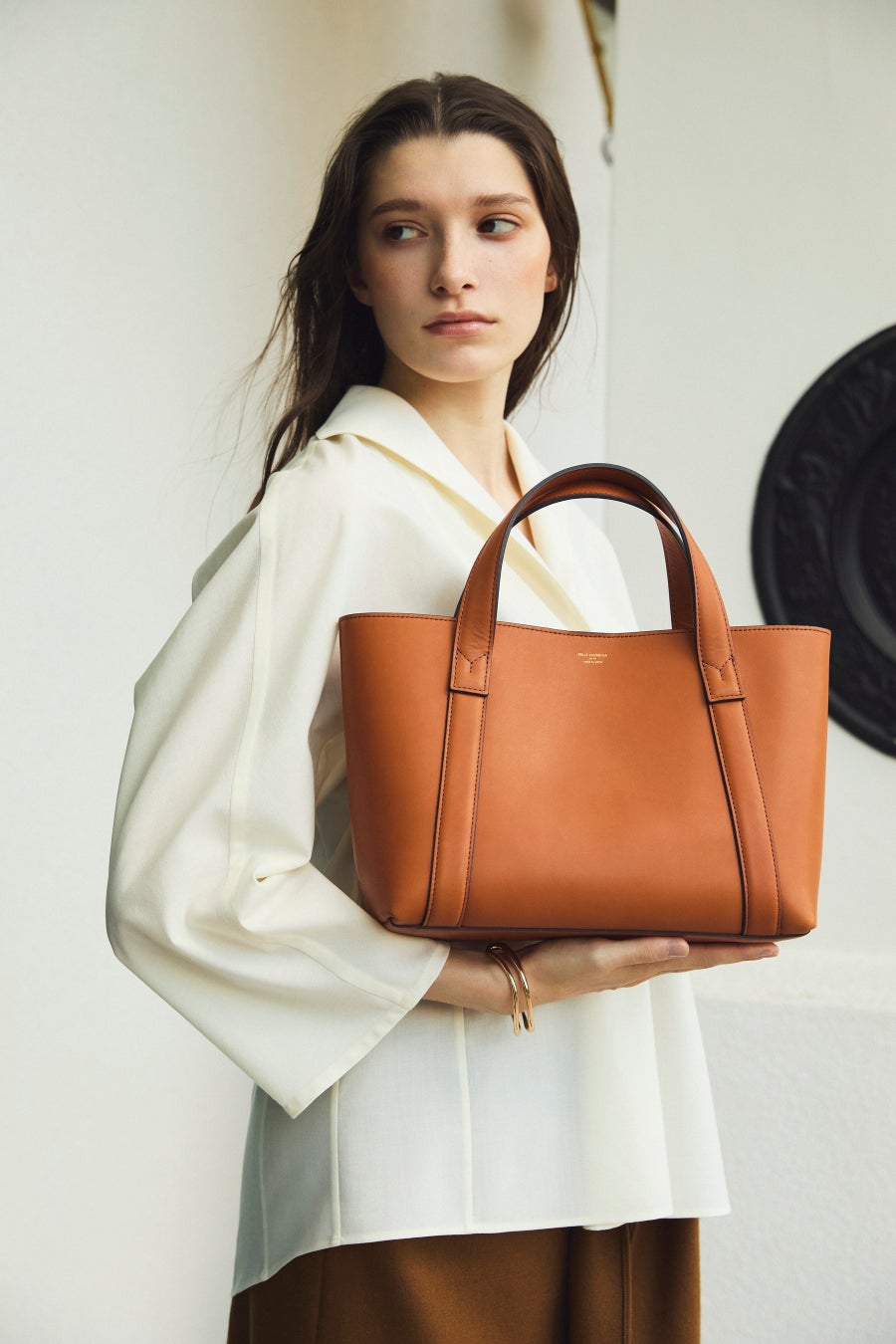 過去に扱ったことのないトスカーナ特有の最高級レザーは、気持ち良く吸い付くようなタッチ感とフィレンツェの赤煉瓦を彷彿とするタンカラーで本場の空気感を味わえる、風合いのある表情を醸し出したエレガントな素材です。