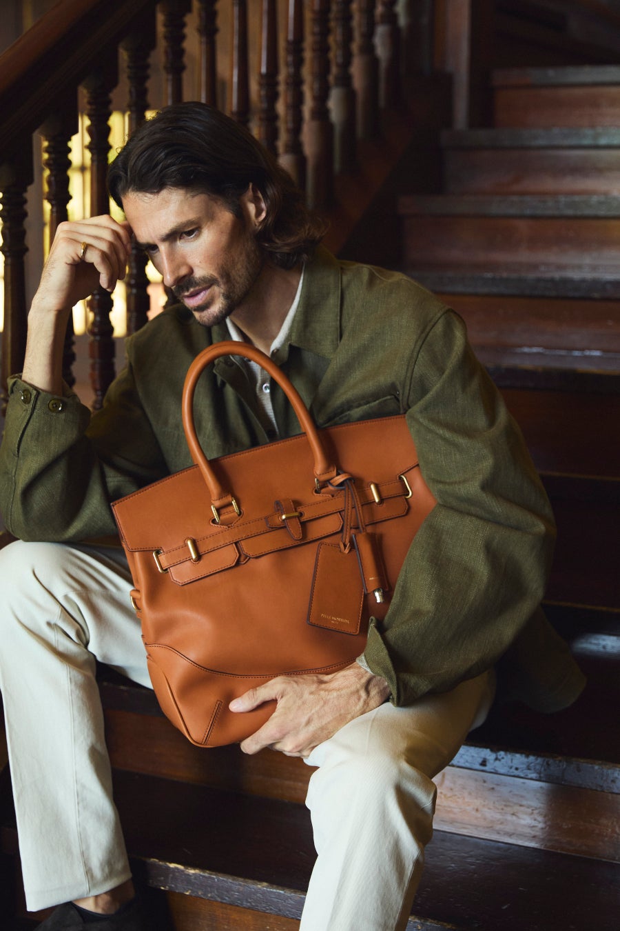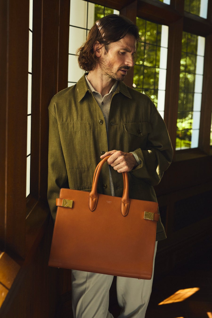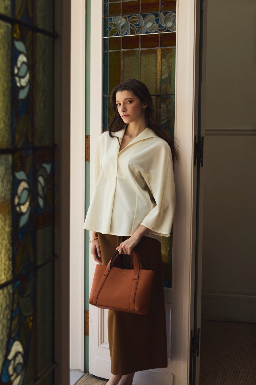 過去に扱ったことのないトスカーナ特有の最高級レザーは、気持ち良く吸い付くようなタッチ感とフィレンツェの赤煉瓦を彷彿とするタンカラーで本場の空気感を味わえる、風合いのある表情を醸し出したエレガントな素材です。