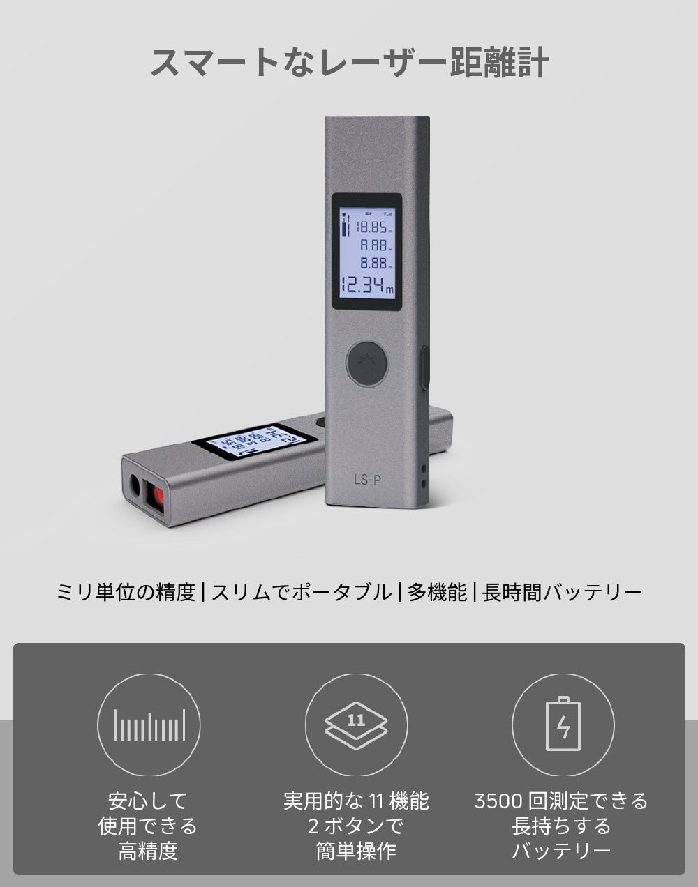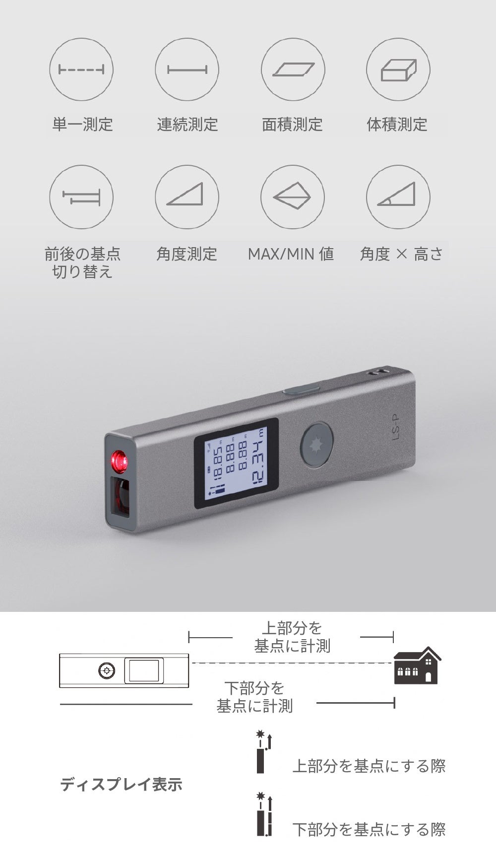 - シンプル操作で簡単に仕事や生活で使える、スマートなレーザー計測器