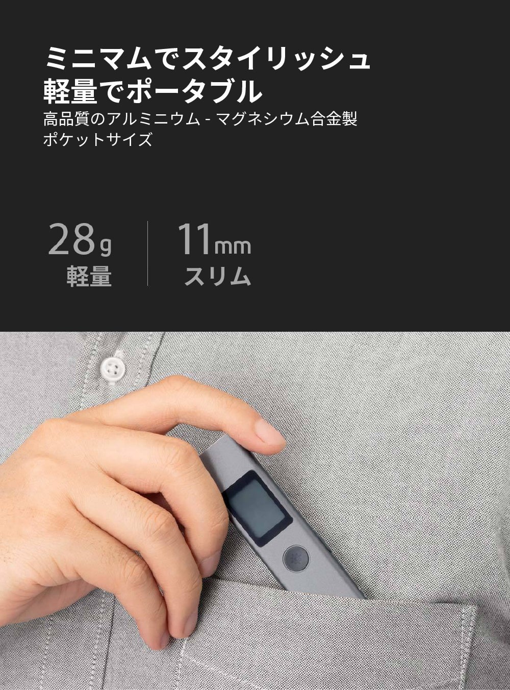 - フル充電で約3500回計測できるバッテリー内蔵、USBケーブルで充電式
