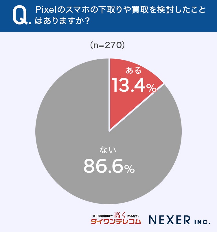 13.4%の方が、Pixelのスマホの下取りや買取を検討したことが「ある」と回答しています。