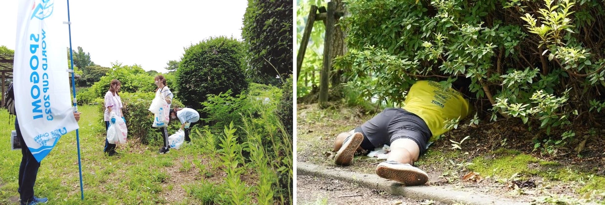 大会の会場となった名城公園北園は、名古屋城が一望でき、四季折々美しい花々が咲き誇る観光名所です。日頃から清掃活動が実施されているため、目につく場所にごみは少なく、ごみの回収に苦戦すると思われましたが、予想に反して選手らは大量のごみを拾い集めました。