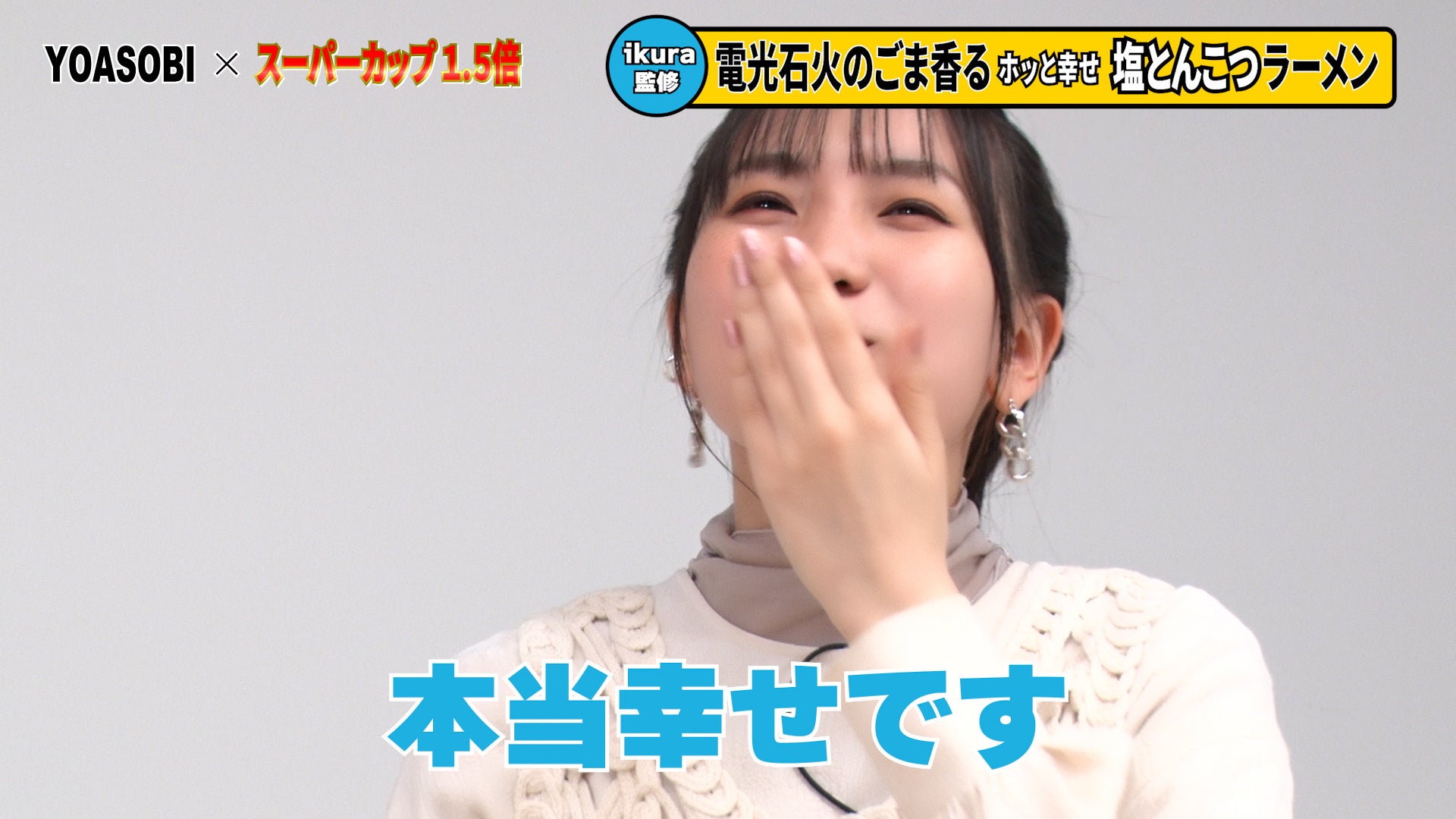 ikuraさんは「幸せだ!塩とんこつがこってり過ぎず、あっさり過ぎずちょうど良いし、ごま油によってしっかりごまも利いてます!疲れた日に食べたいラーメンだ」と自身プロデュースの商品に大満足の様子。Ayaseさんも「美味しい!ちょっと涙腺に来ちゃいますね(笑)お店クオリティだよ」と眉間にしわを寄せ美味しさを嚙みしめていました。