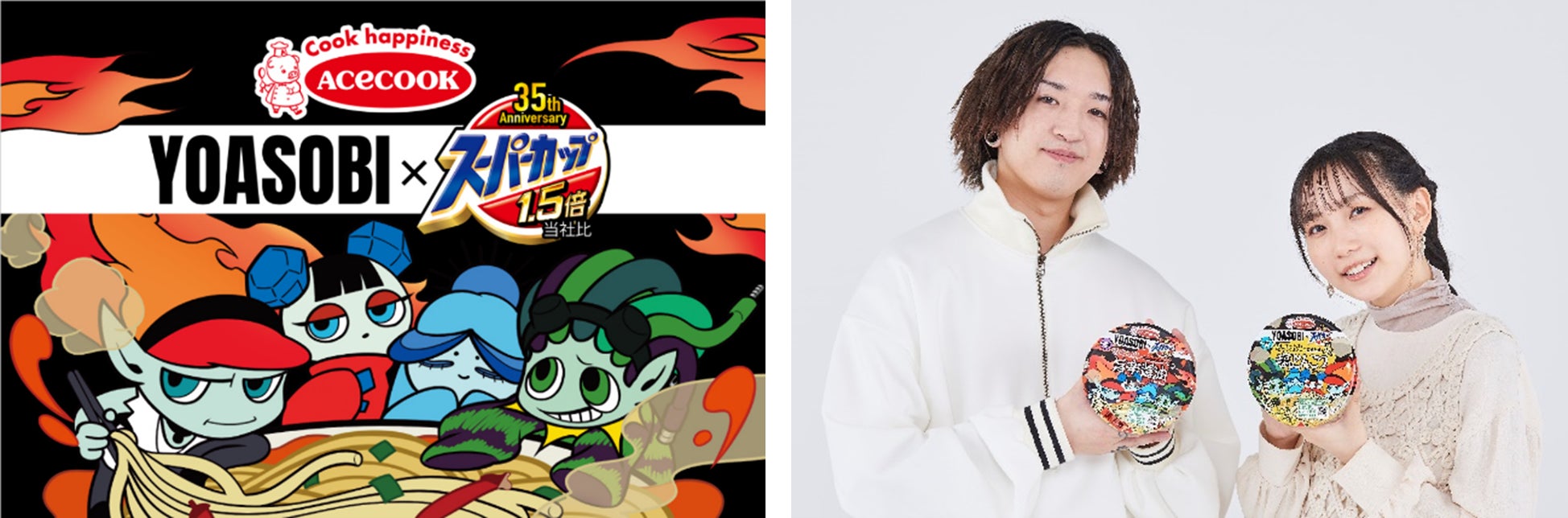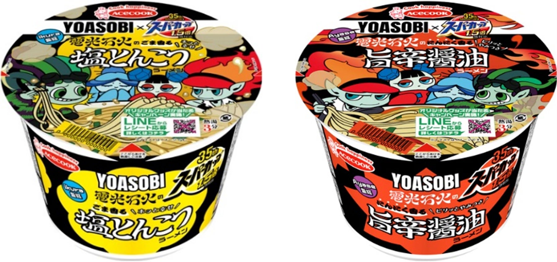 エースコック株式会社(本社:大阪府吹田市 社長:村岡寛)は、「スーパーカップ」発売35周年を記念し、人気アーティストYOASOBIとコラボレーションした「スーパーカップ1.5倍×YOASOBI 電光石火のごま香るホッと幸せ塩とんこつラーメン/電光石火のにんにく香るビリッとやみつき旨辛醤油ラーメン」を2023年6月5日(月)より新発売します。発売に先立ち、初めてのカップめん開発に挑むYOASOBIのお二人に密着したWEBムービーを本日2023年6月1日(木)より公開します。YOASOBIが初めて挑んだカップめん開発。YOASOBIのラーメン愛が溢れて止まらない開発の裏側を是非ご覧ください。