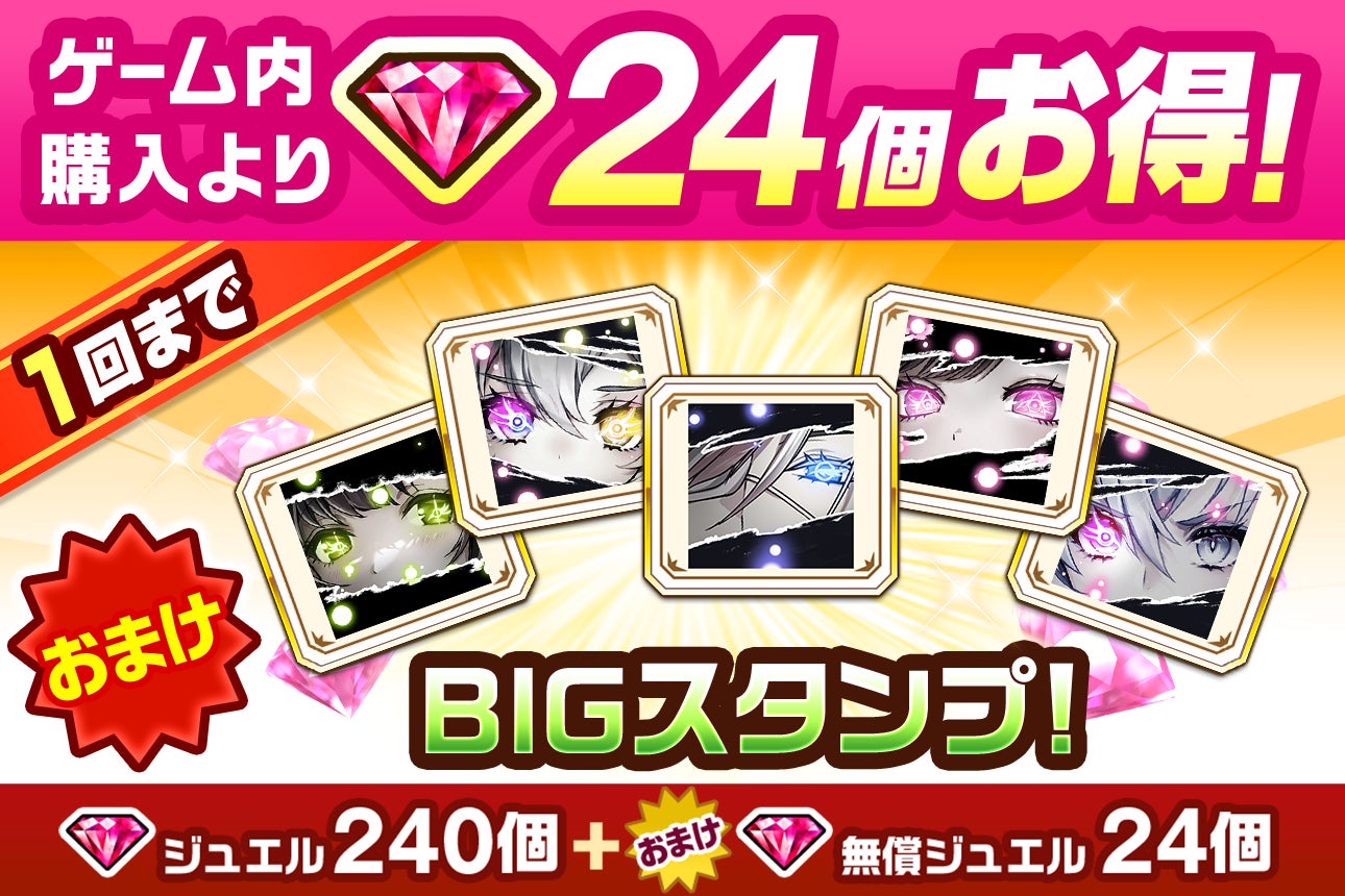 イベントの開催を記念して「新イベントキャラ保証」がついたお得な「プレミアムジュエルパック」や、通常のスタンプよりも約3倍大きい「BIGスタンプ」5種が付いた「BIGスタンプ付きジュエルパック」などを販売しております。『白猫』公式ストアではゲーム内よりもジュエルをお得に購入できますので、ぜひご利用ください。