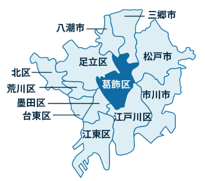 【出展企業エリア】葛飾区とその近隣地域(台東区・墨田区・江東区・北区・荒川区・足立区・江戸川区・八潮市・三郷市・市川市・松戸市)