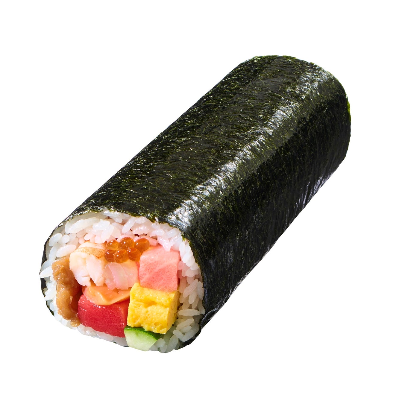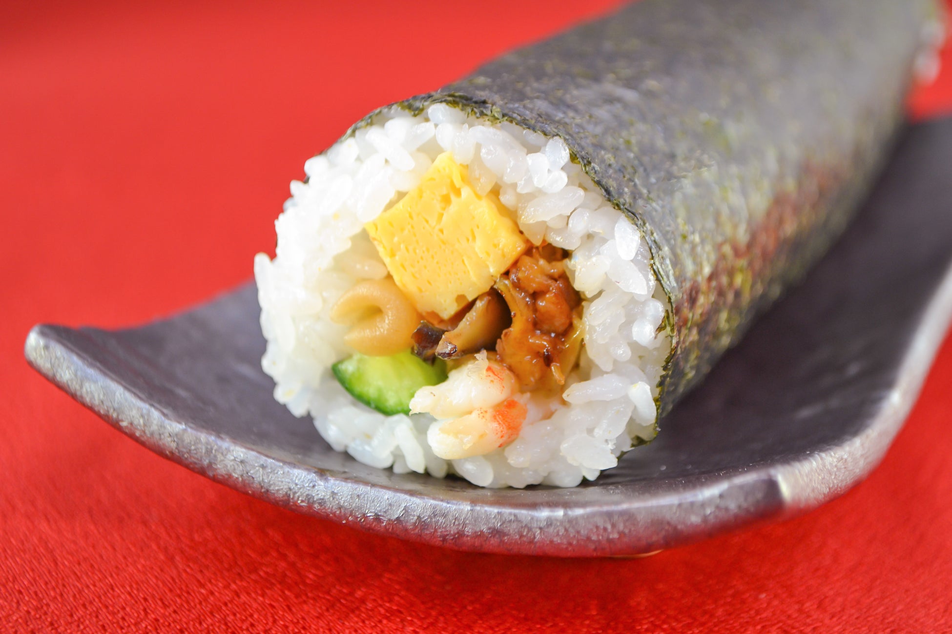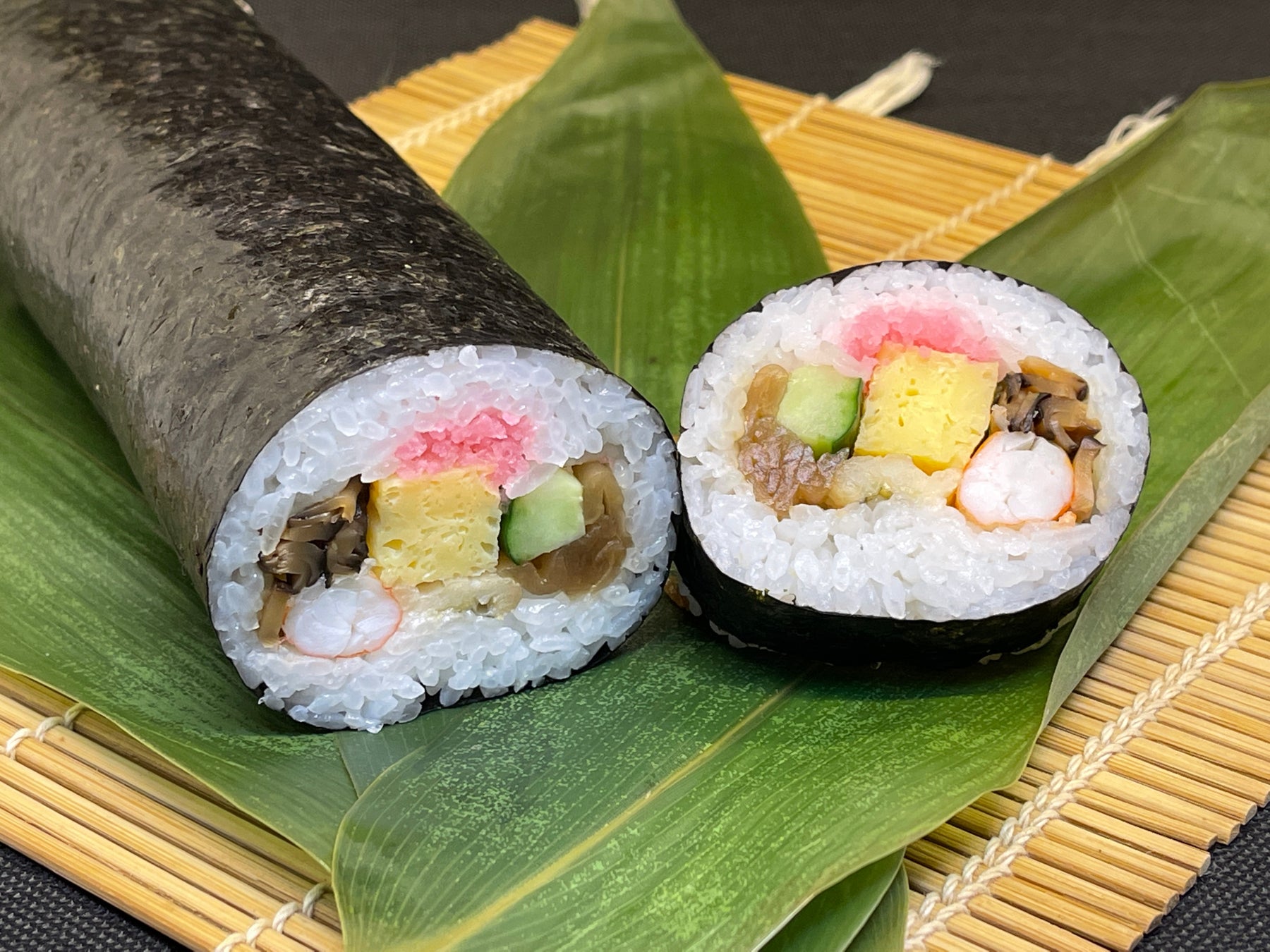 (海老、蟹風味蒲鉾、厚焼玉子、かんぴょう、椎茸、胡瓜、赤でんぶ)